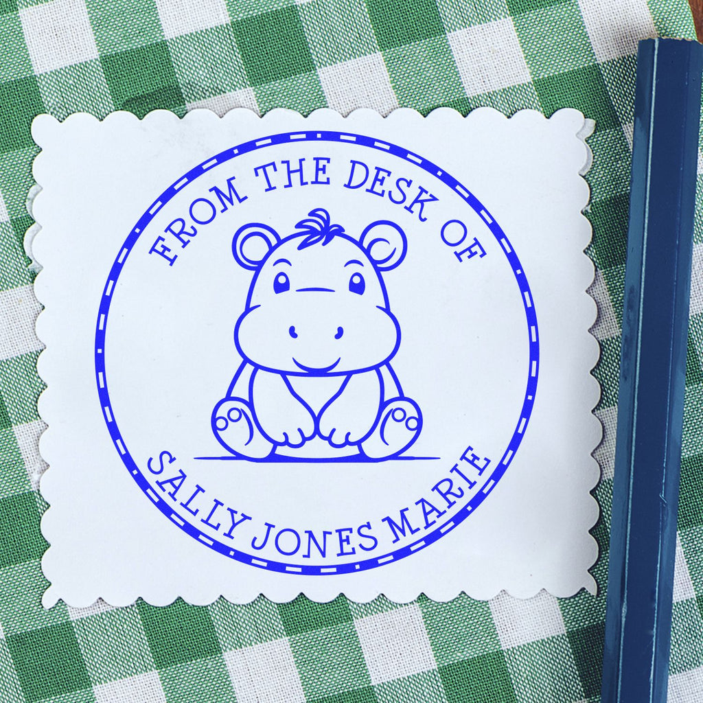 - PERSONALIZED LIBRARY STAMP: Create a lasting impression with this adorable hippo-themed bookplate stamp, perfect for marking your child's growing book collection. Customizable text options include "This Book Belongs To" or "From the Library of."