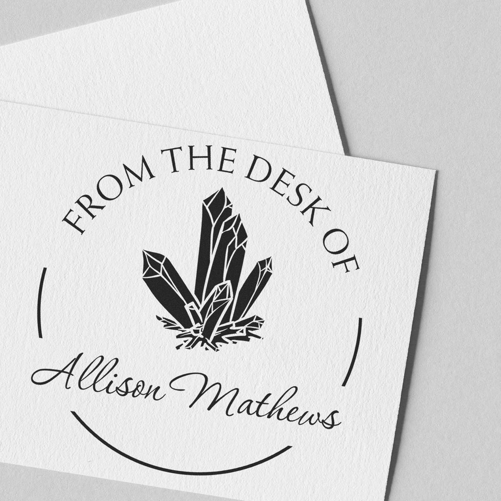 Product Details - Size: 1-5/8" in diameter - Design: Features a clean round design with phrases such as "This Book Belongs To," "From The Library of," and "Ex Libris" at the top arc, followed by your name or another saying under the center image of dazzling crystals. The top and bottom arc texts are separated by a solid line, adding to the elegance of the design.
