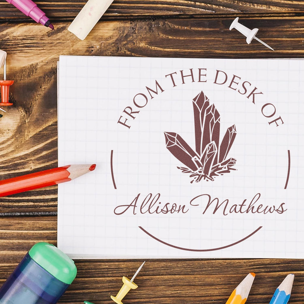 - PERSONALIZE WITH PRIDE: Transform your book collection with this elegant 1-5/8" round crystal-themed stamp, featuring customizable text arcs and a stunning centerpiece design that makes each book uniquely yours.