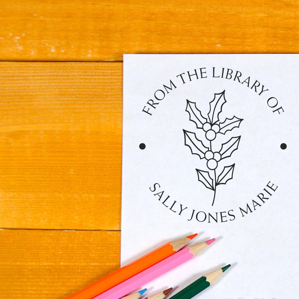 PSI Pre-Inked December Holly Personalized Book Library Stamp Highlights and Features