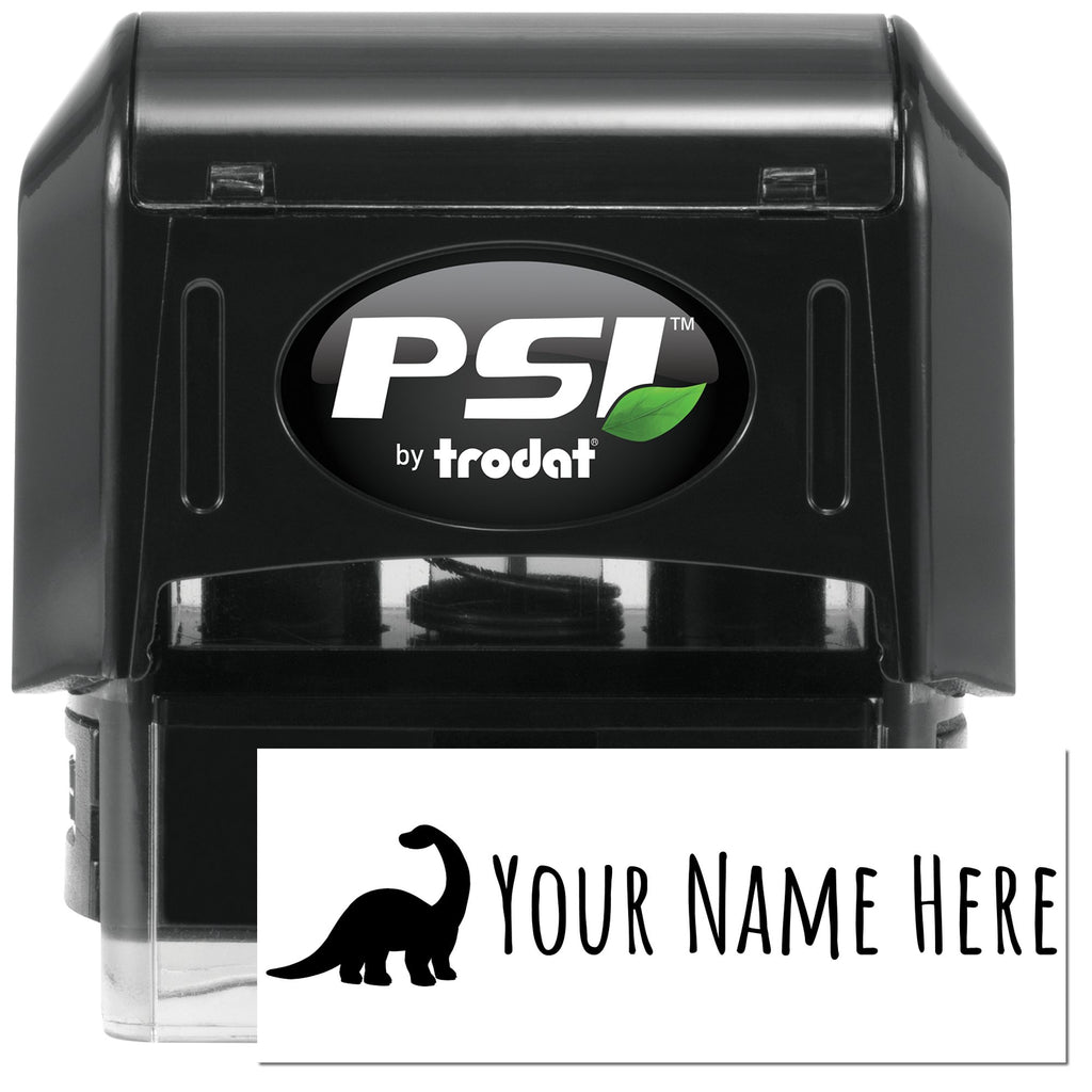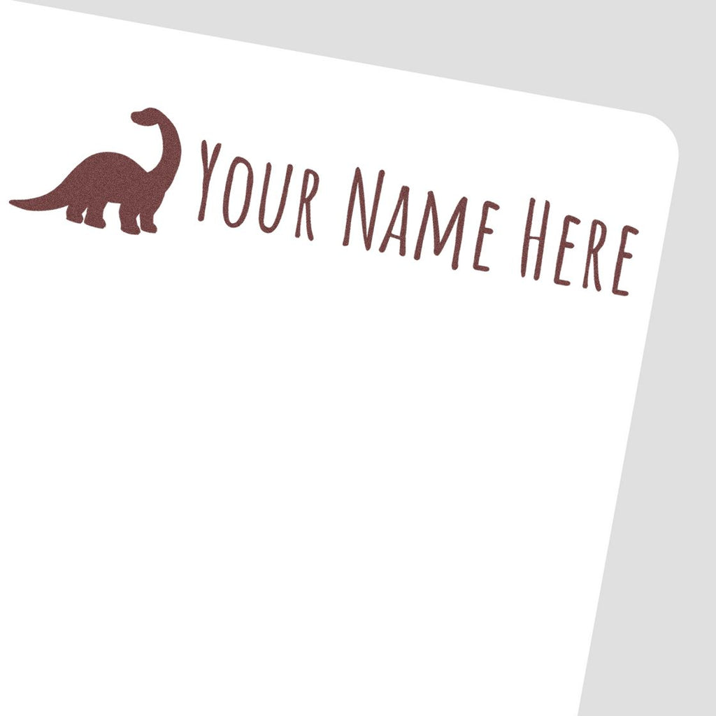 Make your mark with prehistoric flair using the PSI Pre-Inked Dino Delight Customized Stamp - where professional functionality meets playful design. This charming stamp features a friendly dinosaur silhouette that adds personality to every impression while maintaining a polished, business-appropriate appearance.