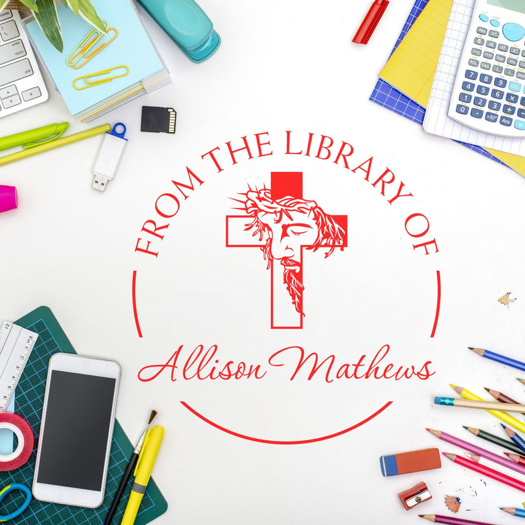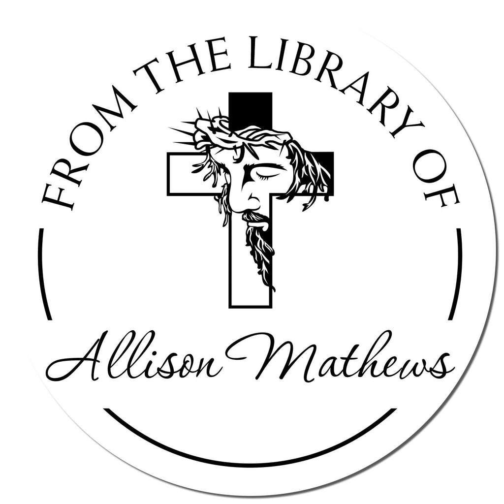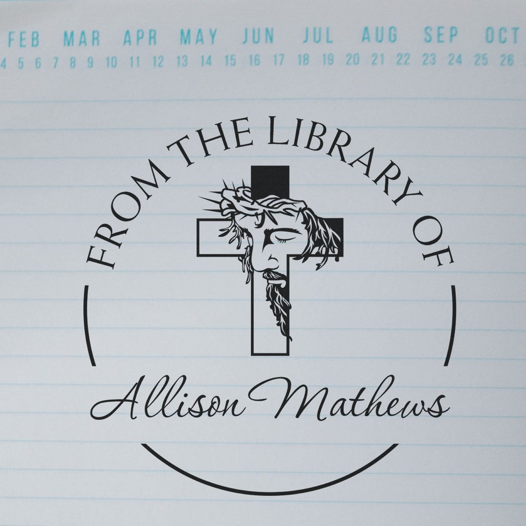 Personalized Design for Meaningful Touches The Divine Cross design is not just beautiful; it’s meaningful. This stamp features a clean round design with phrases such as "This Book Belongs To," "From The Library of," and "Ex Libris" elegantly displayed around the center image of the Divine Cross. The top arc text and bottom arc text are separated by a solid line, creating a polished look that enhances the overall aesthetic. With an impression size of 1-5/8" in diameter, this stamp is perfect for adding a personalized touch to your books, cards, and letters.