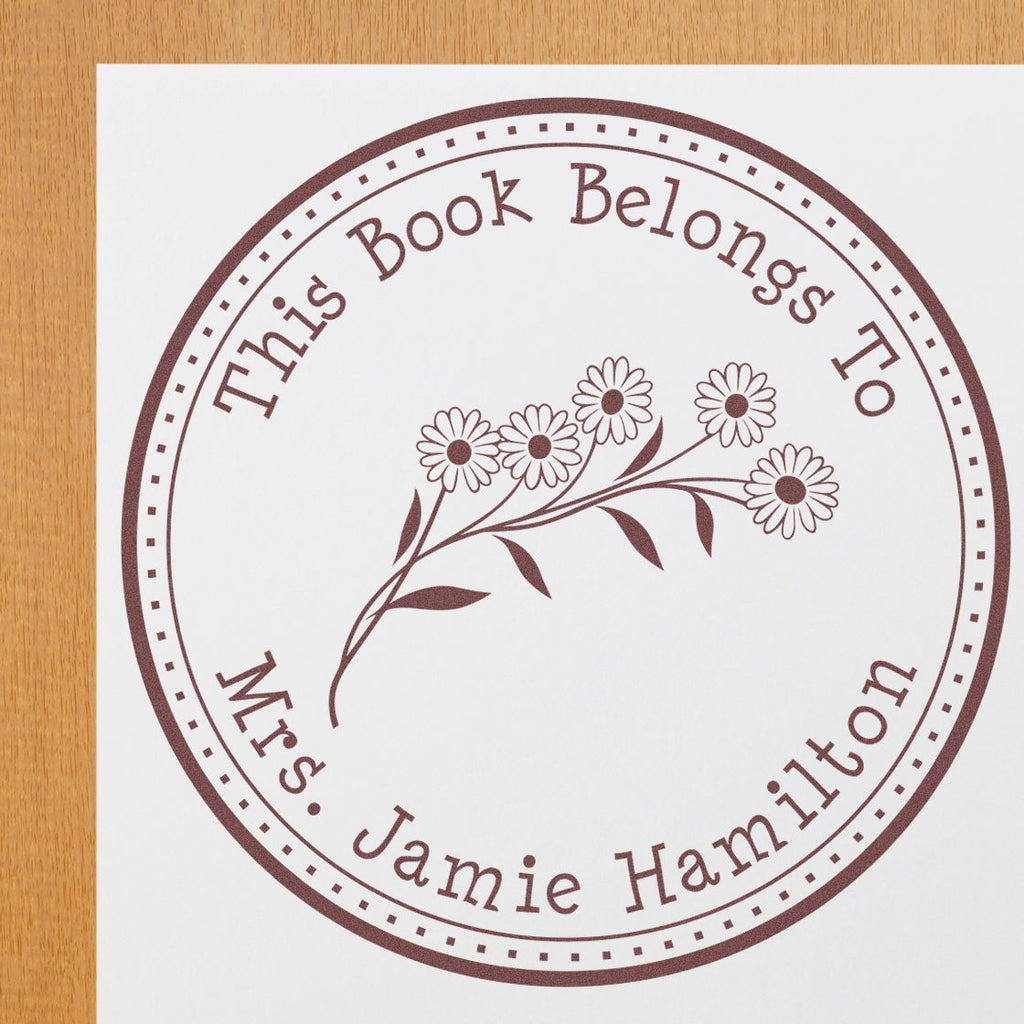 - PERSONALIZED LIBRARY STAMP: Create a lasting impression with this elegant 1-5/8" daisy-themed stamp, perfect for marking your books, classroom materials, and personal library collection with style and professionalism.