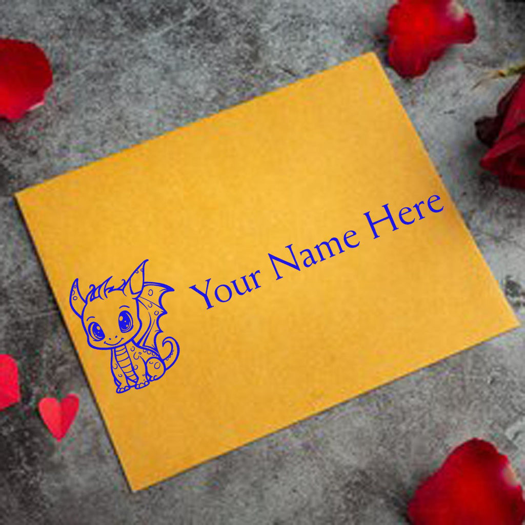 Make your mark in the real estate industry with a custom stamp that combines personality with practicality. The delightful dragon design, complete with expressive eyes and tiny wings, adds a memorable touch to your business correspondence, contracts, and marketing materials. The elegant font perfectly complements the whimsical artwork, creating a balanced, professional appearance.