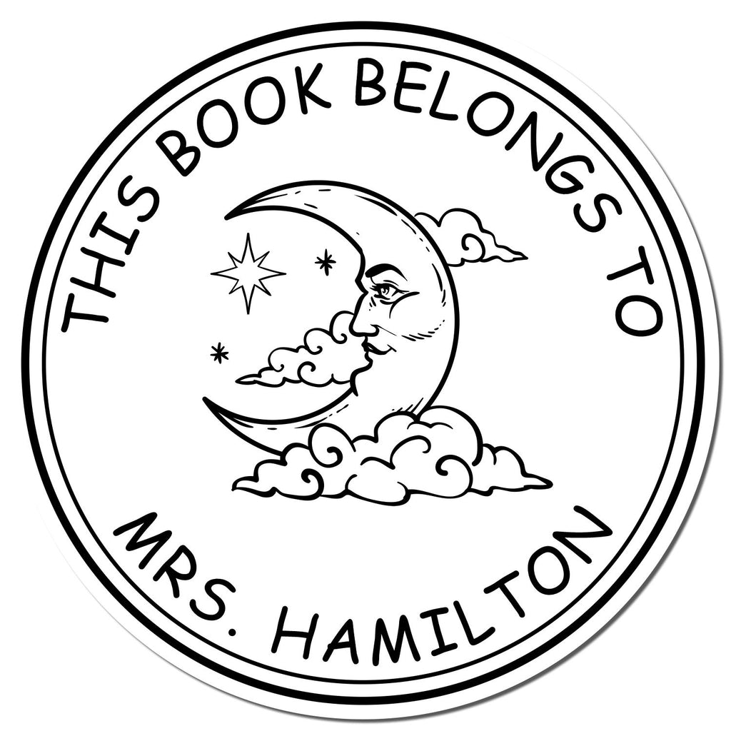 - ELEGANT MOON DESIGN: Showcase your love for books with a beautifully crafted 1-5/8" diameter stamp featuring a celestial moon motif, clouds, and thoughtfully arranged text in a double circular border.