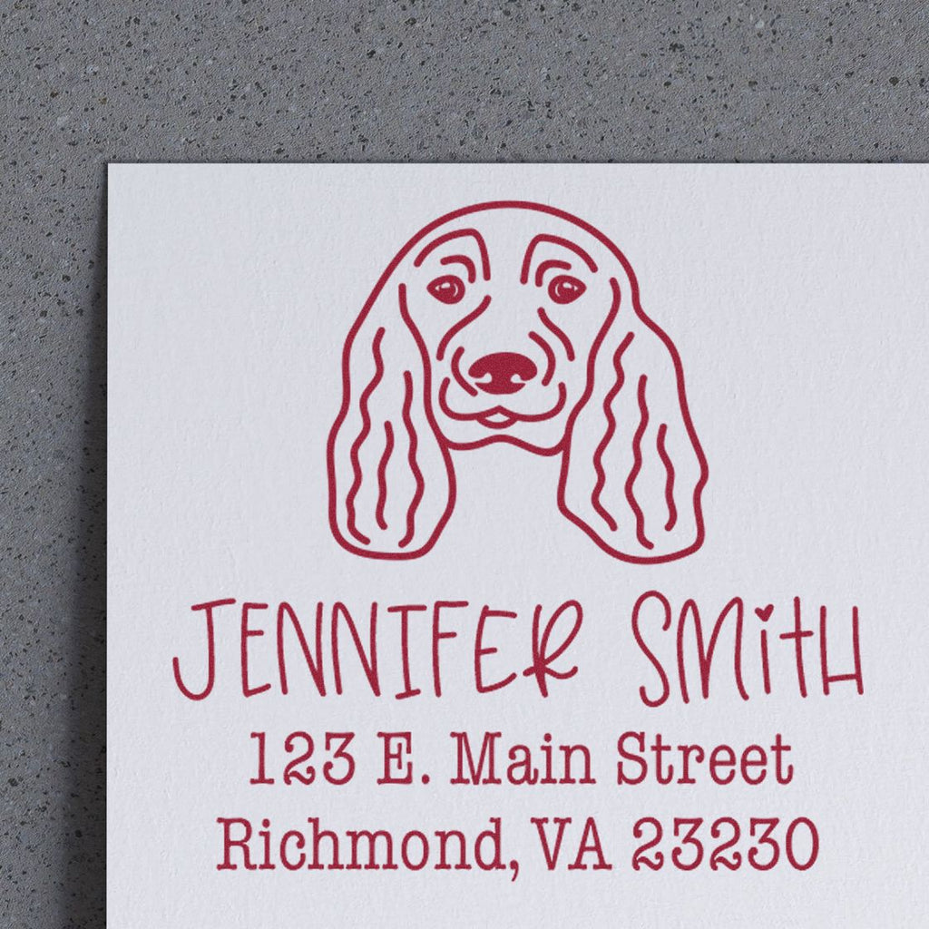 - Elevate Your Correspondence: Transform your mail with our Custom English Cocker Spaniel Address Stamp, designed to add a personal touch to every envelope. Impress your recipients with a unique design that showcases your love for this charming breed. Perfect for invitations, thank-you notes, and everyday mailings!