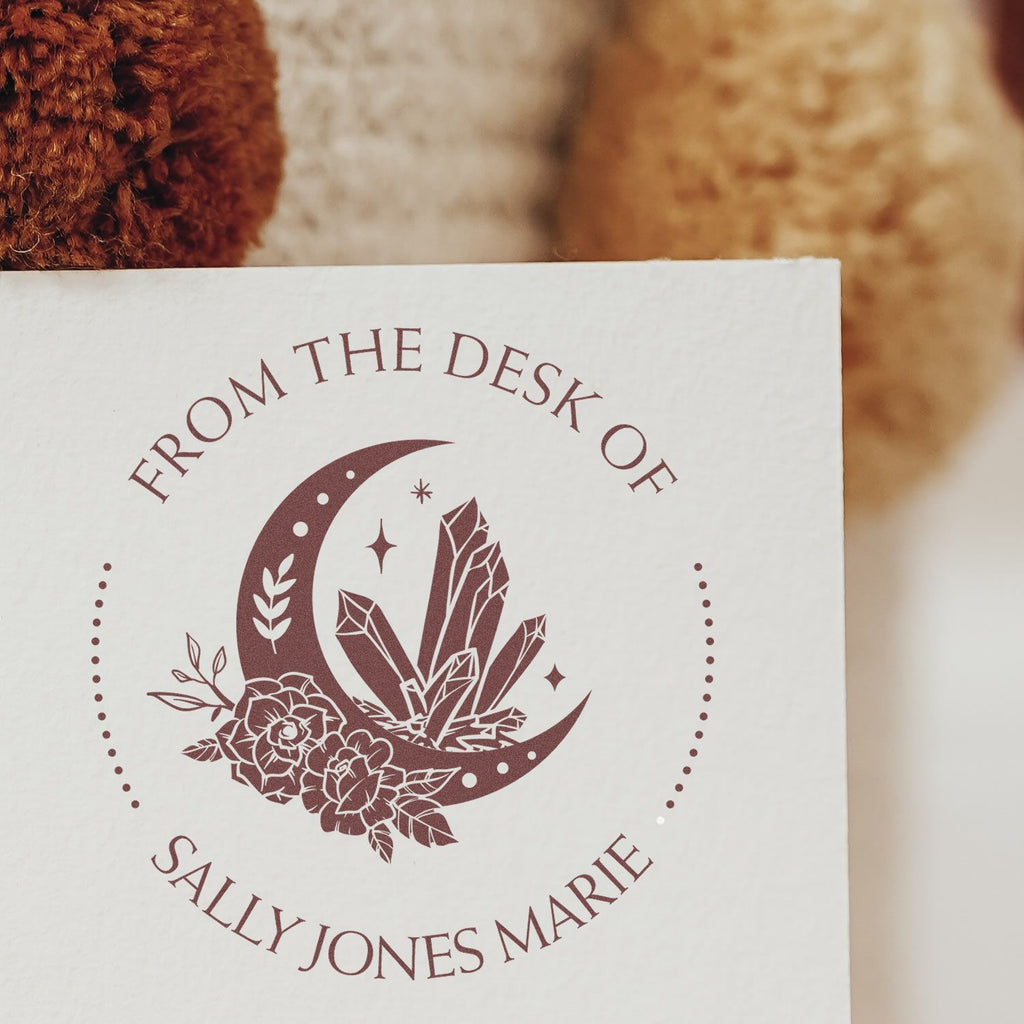 - STYLISH DESIGN: Featuring a Fantastical Moon and Mystic Crystals, this round bookplate stamp is both functional and beautiful. The clean design includes phrases like "This Book Belongs To" and can be customized with your name. Transform ordinary books into cherished keepsakes!