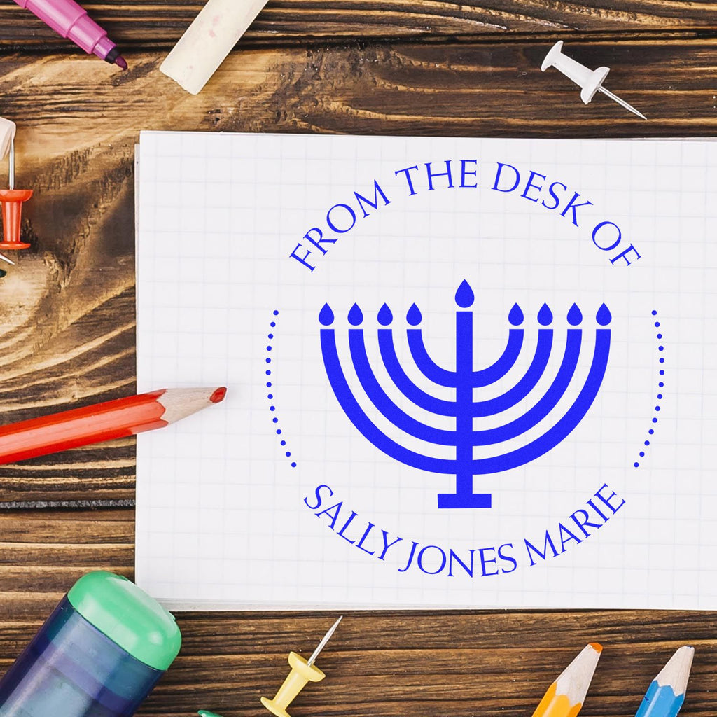 - PERSONALIZED ELEGANCE: Transform your holiday mailings with this Festival of Lights customized address stamper, featuring a beautifully detailed Menorah design. Perfect for Hanukkah cards and seasonal correspondence.