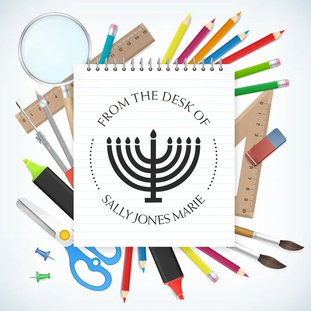 - CUSTOMIZATION OPTIONS: Choose from five vibrant ink colors to match your style. Add your name or custom text in elegant arced formatting around the Menorah centerpiece.