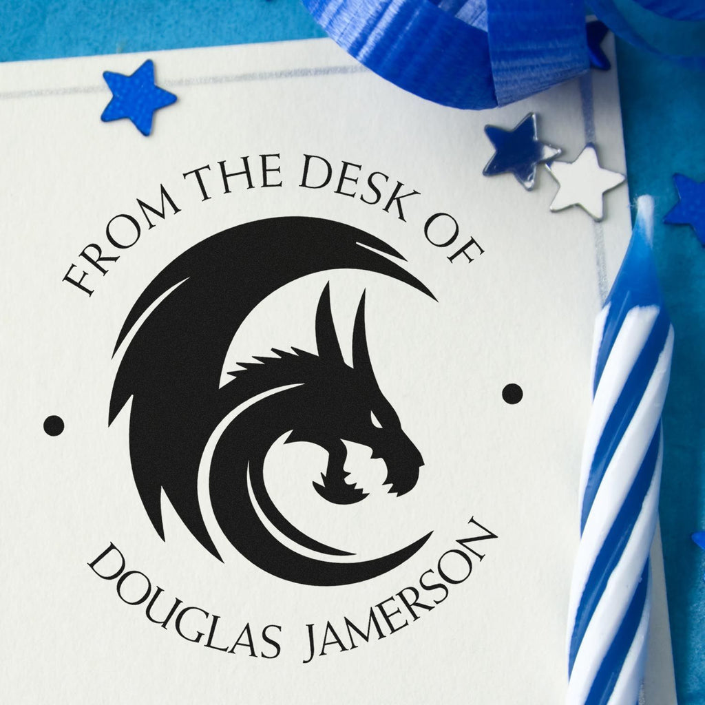 - PERSONALIZE YOUR LIBRARY: Transform your book collection with this elegant 1-5/8" diameter custom stamp featuring a striking Flame Whisker Dragon design. Perfect for marking ownership and creating a lasting impression on your cherished books.