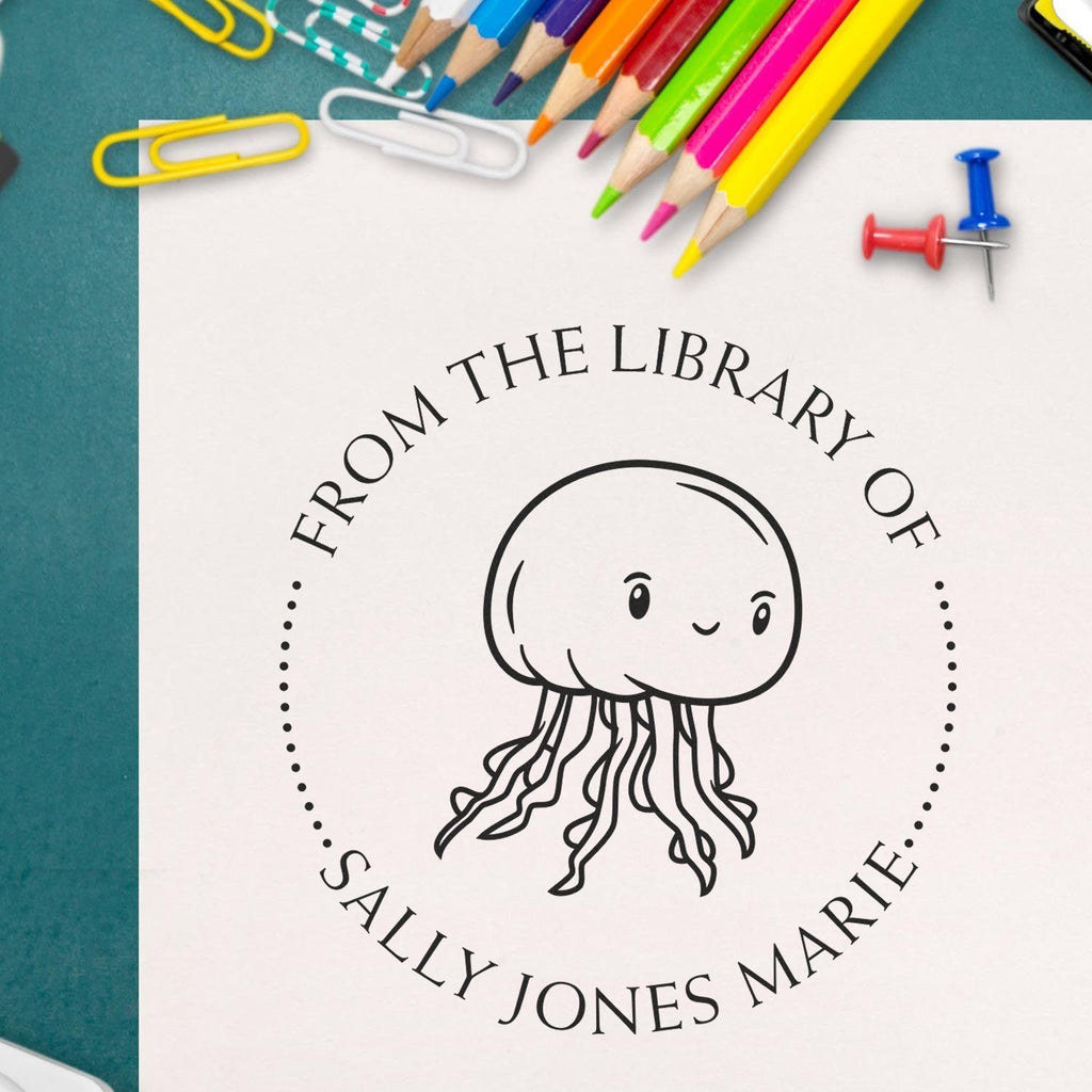 - PERSONALIZATION PERFECTION: Create a lasting impression with this elegant jellyfish bookplate stamp, featuring your custom text and a mesmerizing floating jellyfish design. Makes up to 15,000 crisp impressions before needing a refill.