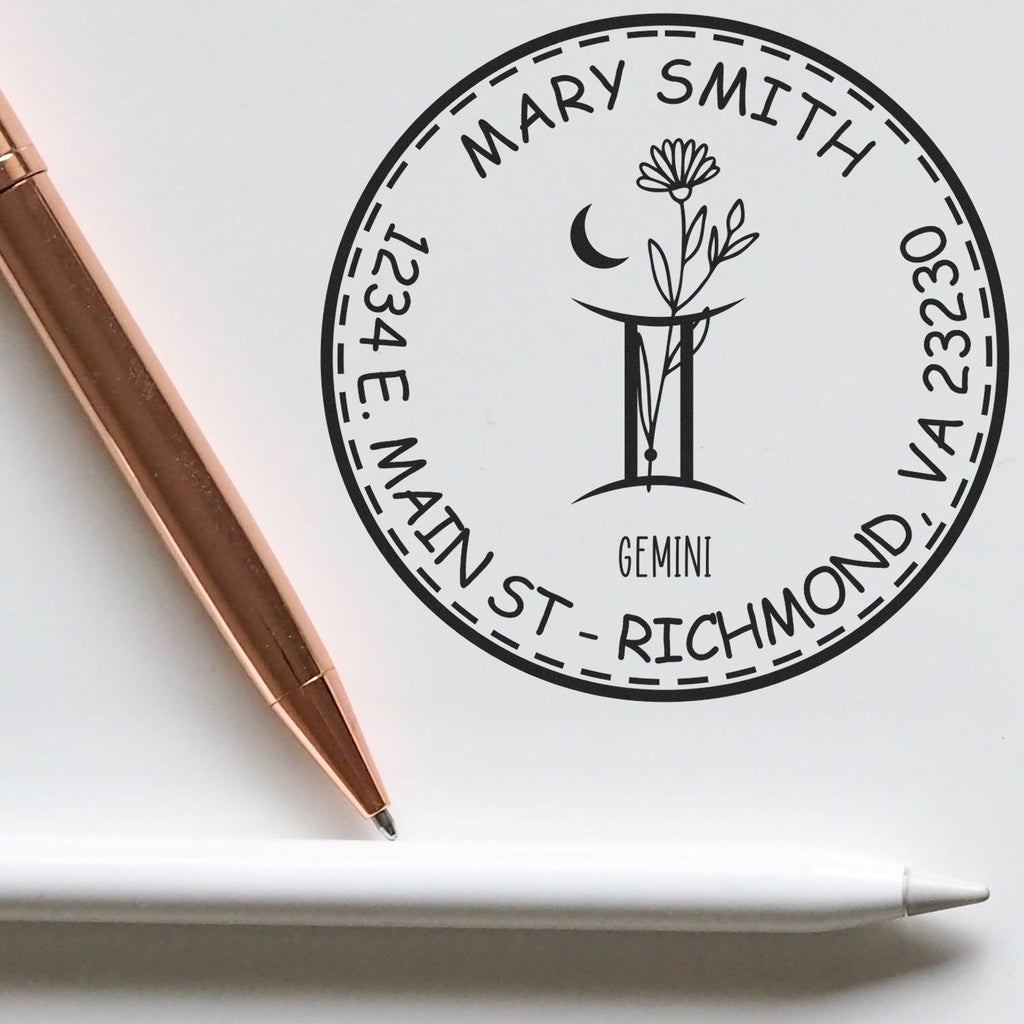 - PERSONALIZED ELEGANCE: Transform your correspondence with this beautifully crafted Gemini zodiac stamp, featuring a stunning floral design and precise 1-5/8" diameter impression that adds a professional touch to every envelope.