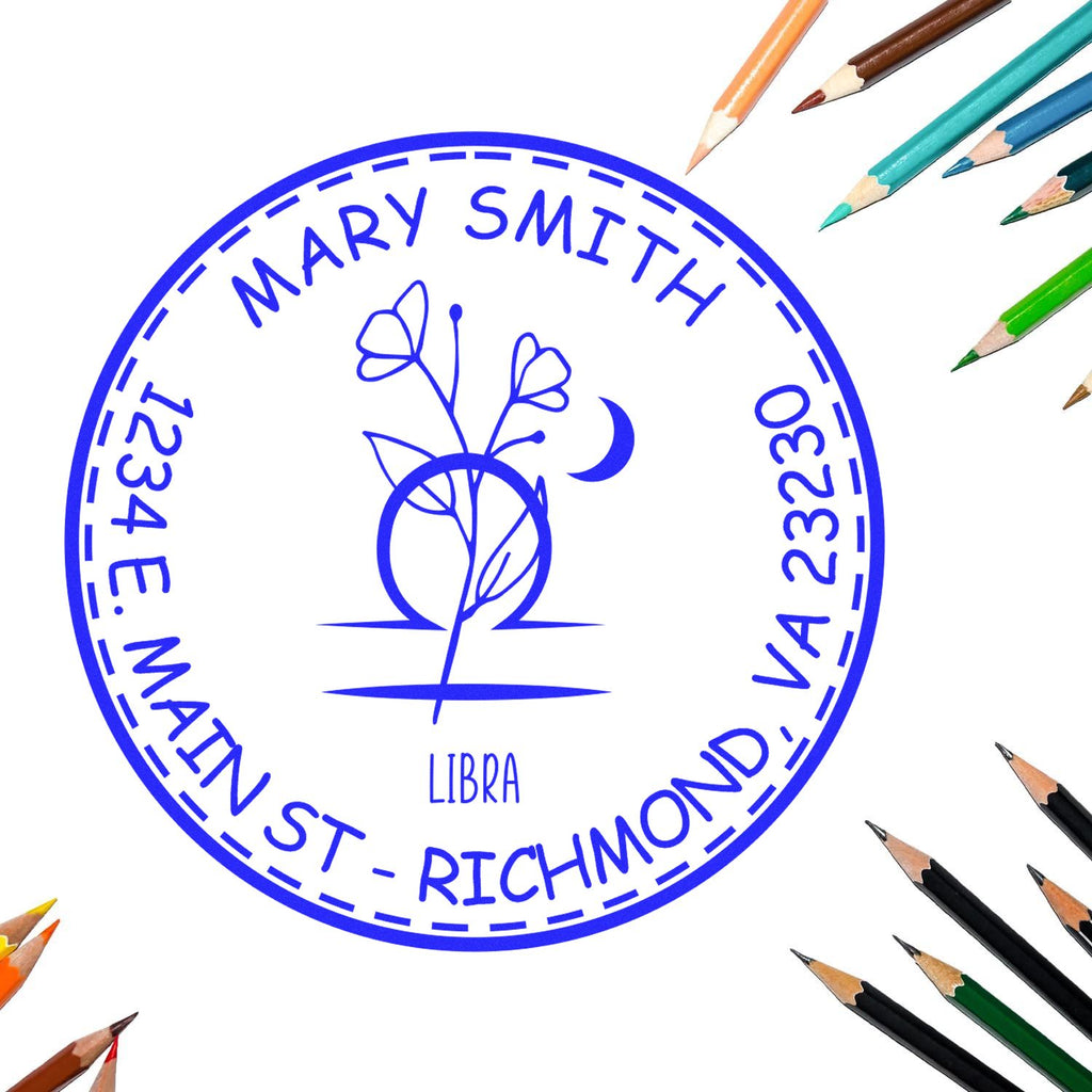 - PERSONALIZED ELEGANCE: Showcase your unique style with this Libra-themed custom address stamp, featuring a stunning floral zodiac design that makes your correspondence truly stand out. Perfect for astrology enthusiasts and style-conscious individuals.