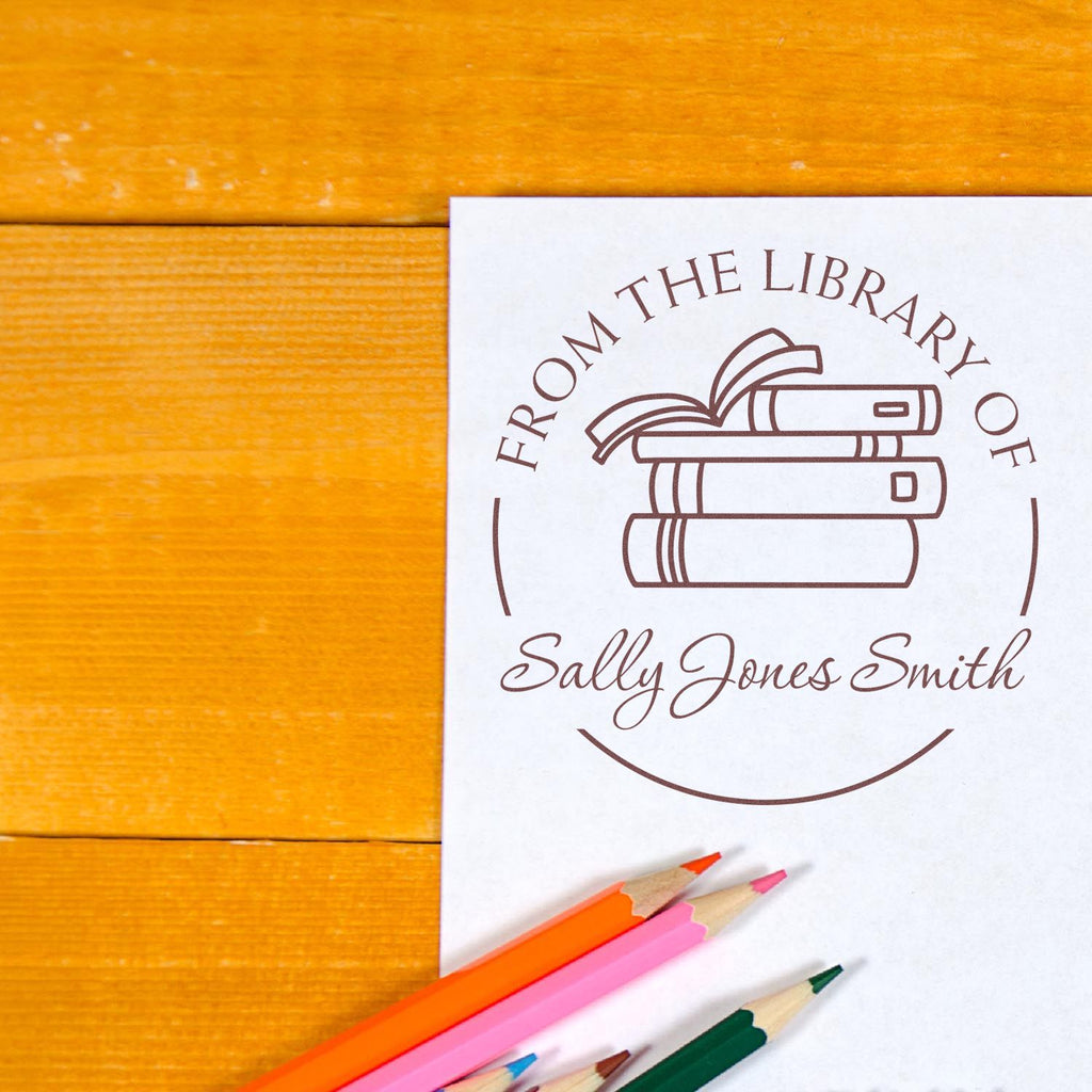 Fun and Engaging Design The design of this book stamp features a charming center image of a Fun Classroom stack of books, surrounded by phrases such as "This Book Belongs To," "From The Library of," and "Ex Libris." The top arc text and bottom arc text are separated by a solid line, creating a clean and professional look. With an impression size of 1-5/8" in diameter, this stamp is perfect for any book, ensuring that your students' names stand out beautifully.