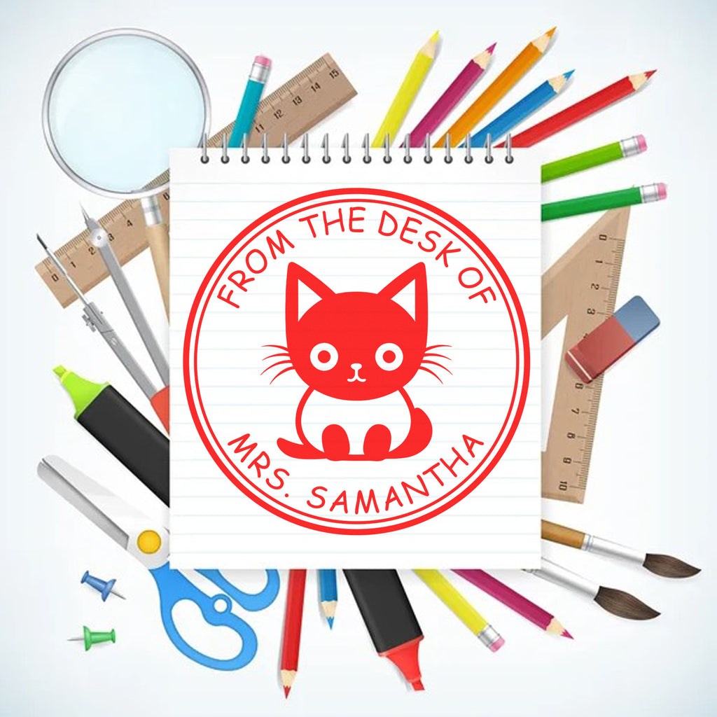 - PERSONALIZED LIBRARY STAMP: Showcase your love for books with this charming 1-5/8" pre-inked stamp featuring an adorable feline design. Perfect for marking your personal collection with style and personality.