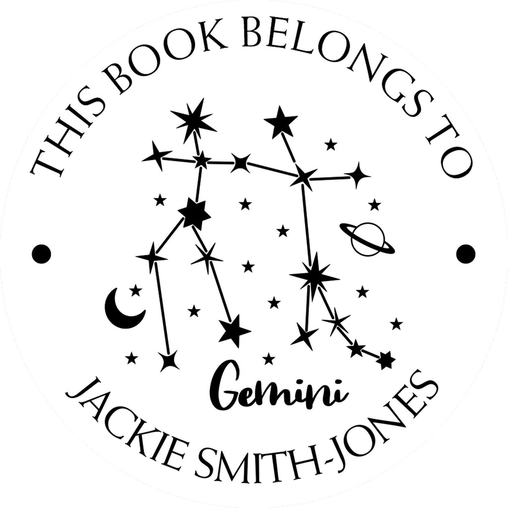 - • PERSONALIZED CELESTIAL DESIGN: Transform your library with this elegant Gemini constellation stamp, featuring planets, moon, and stars. Perfect for astronomy lovers and book enthusiasts seeking a unique way to mark their collection.