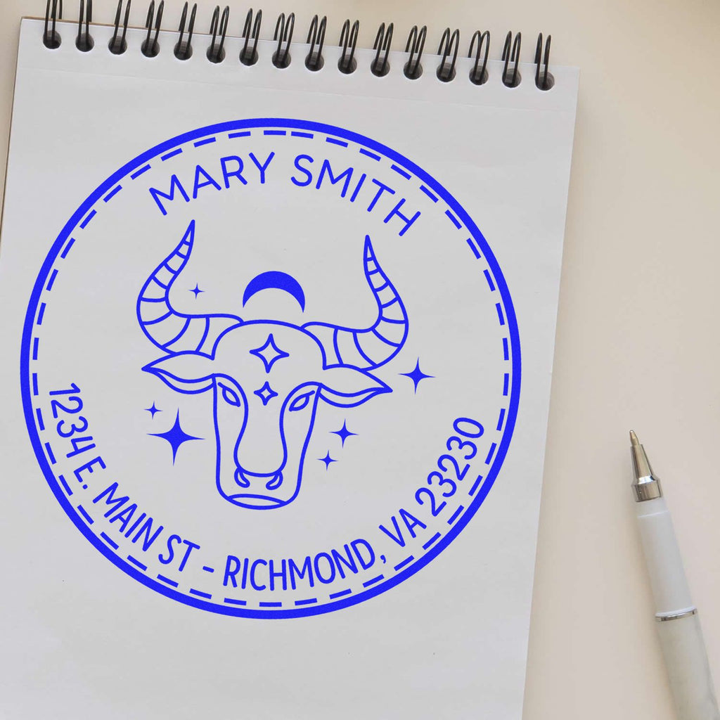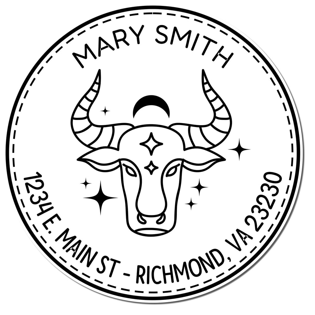 - PERSONALIZED PERFECTION: Showcase your Taurus pride with this beautifully crafted zodiac address stamp, featuring a majestic bull and crescent moon design. Makes a lasting impression with every use, perfect for astrology enthusiasts.