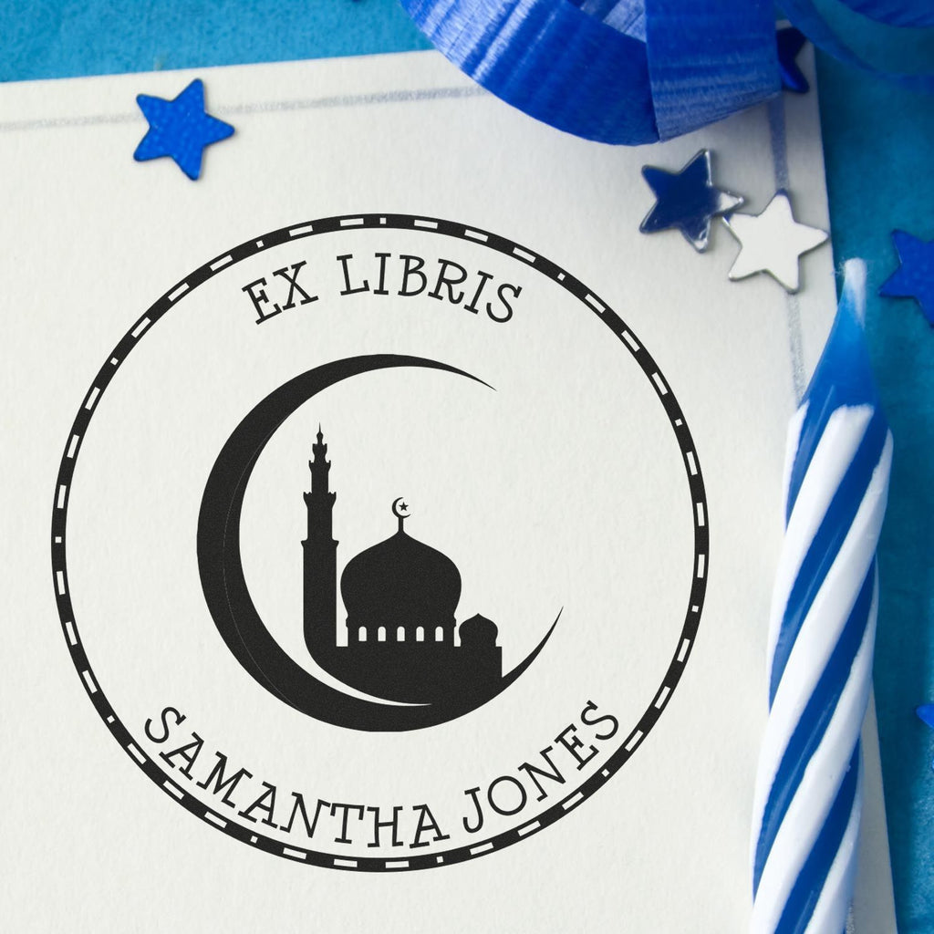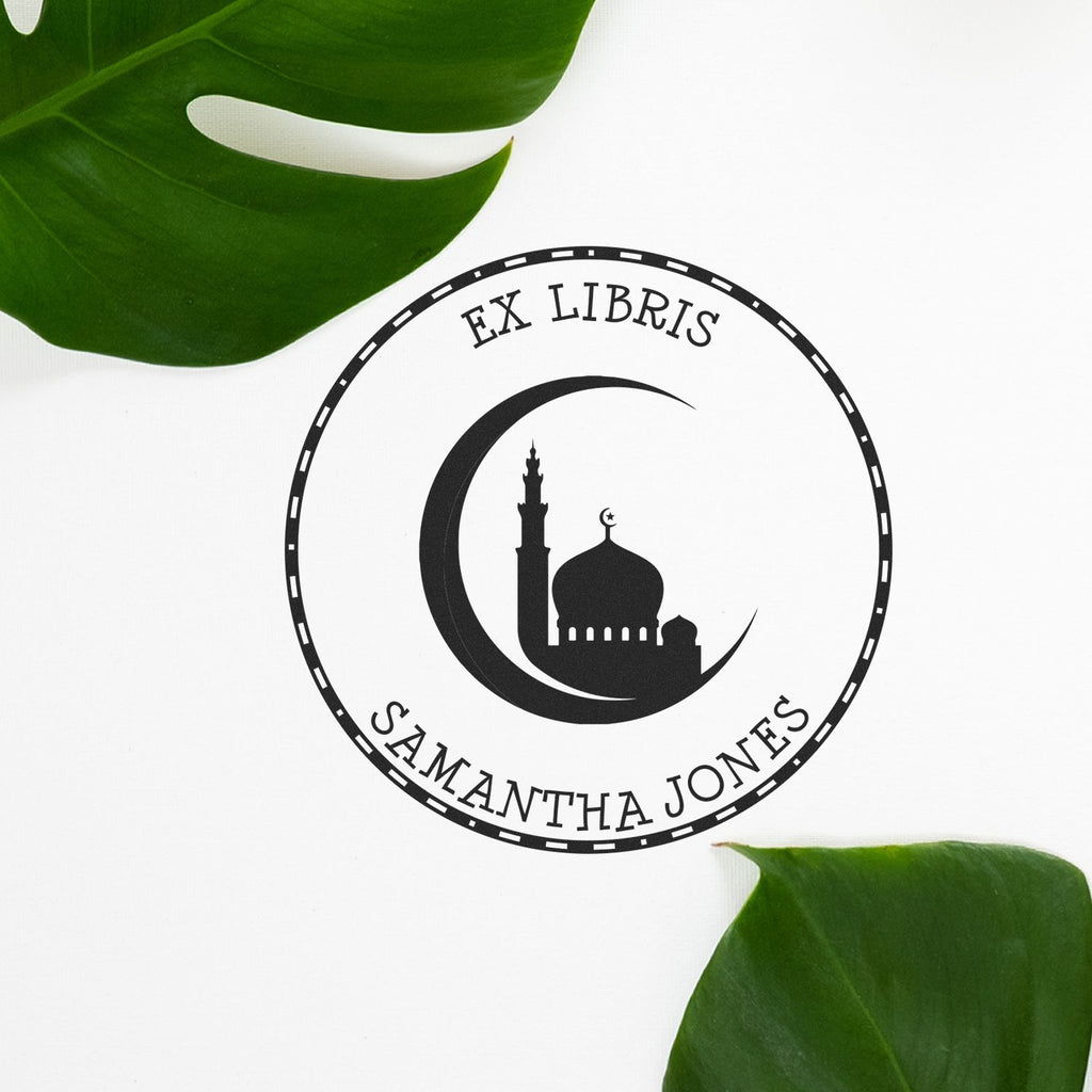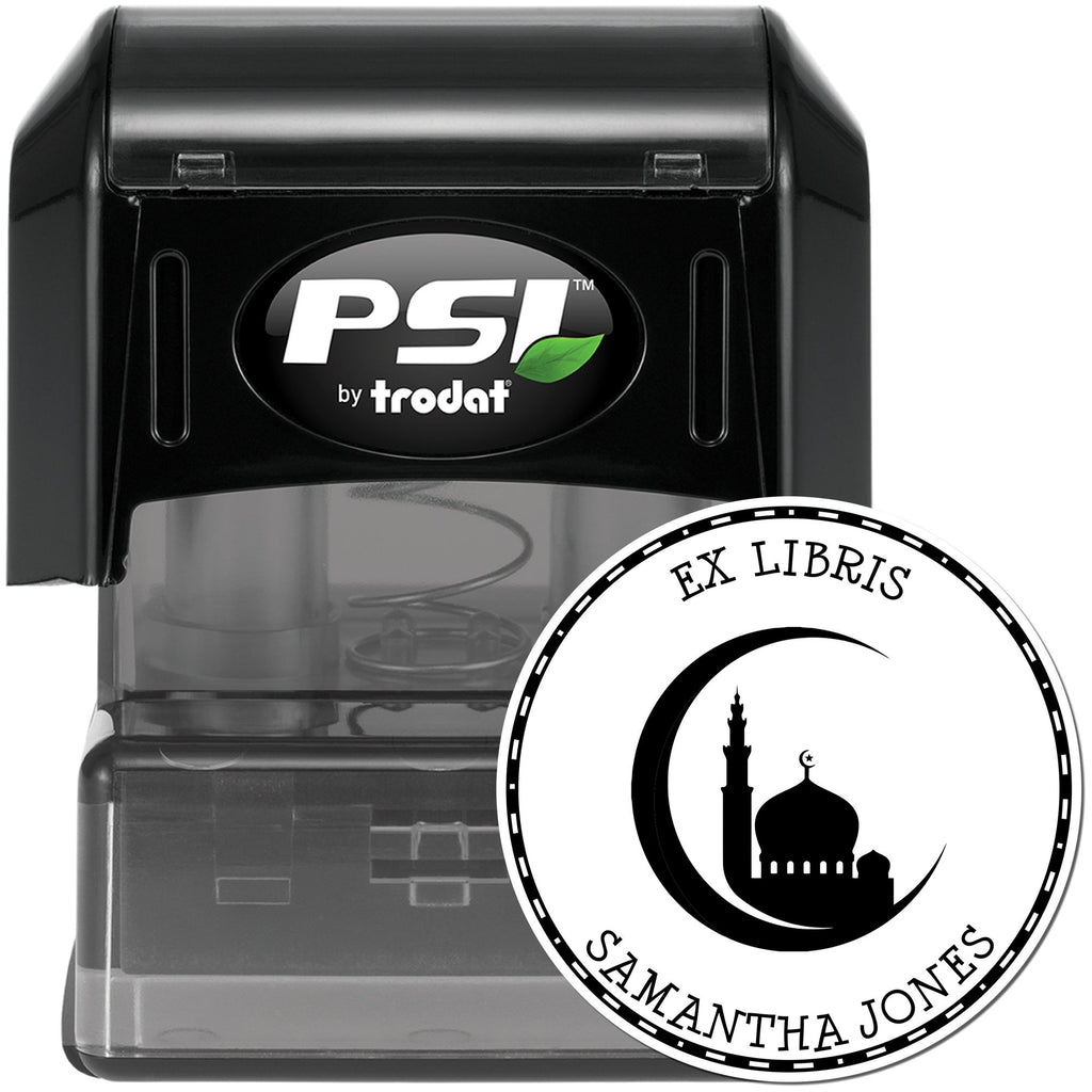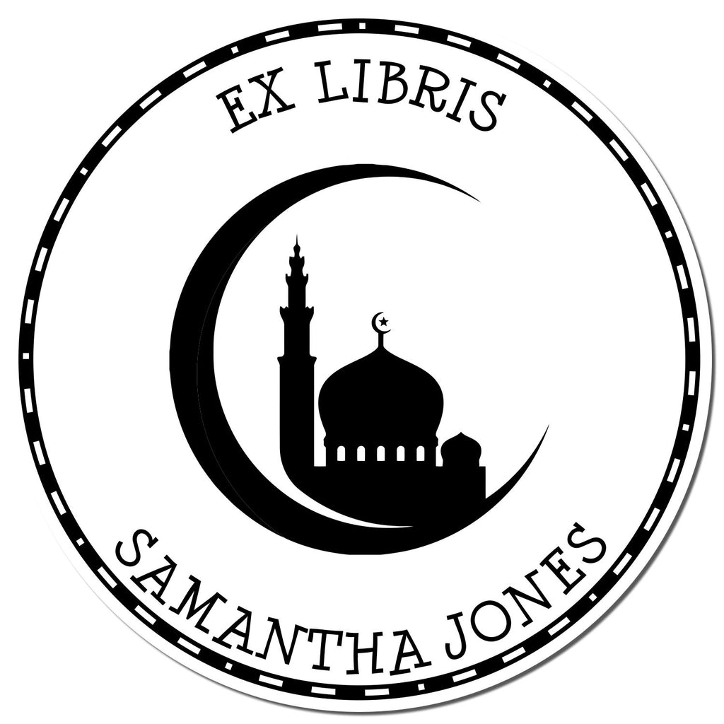 A Design That Speaks to Your Faith The design of the PSI Pre-Inked Holy Crescent Star Custom Made Address Stamp is truly special. It features a center image of a Holy Crescent Star, surrounded by a solid circle border filled with white dashes and dots. The phrases "This Book Belongs To", "From The Library of", and "Ex Libris" can be elegantly displayed at the top arc, followed by your name or a personal saying at the bottom arc. This customization allows you to make the stamp uniquely yours, reflecting your identity and beliefs in every impression.