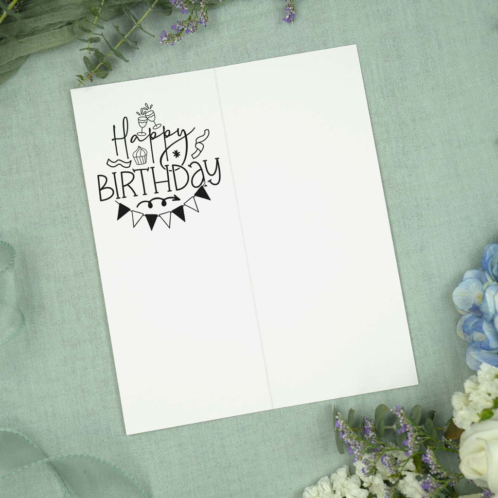 - Craft-friendly: Whimsical black-and-white hand-drawn birthday motif: cupcakes, streamers, pennants and clinking glasses: made for coloring, printables, scrapbooks and DIY party décor.