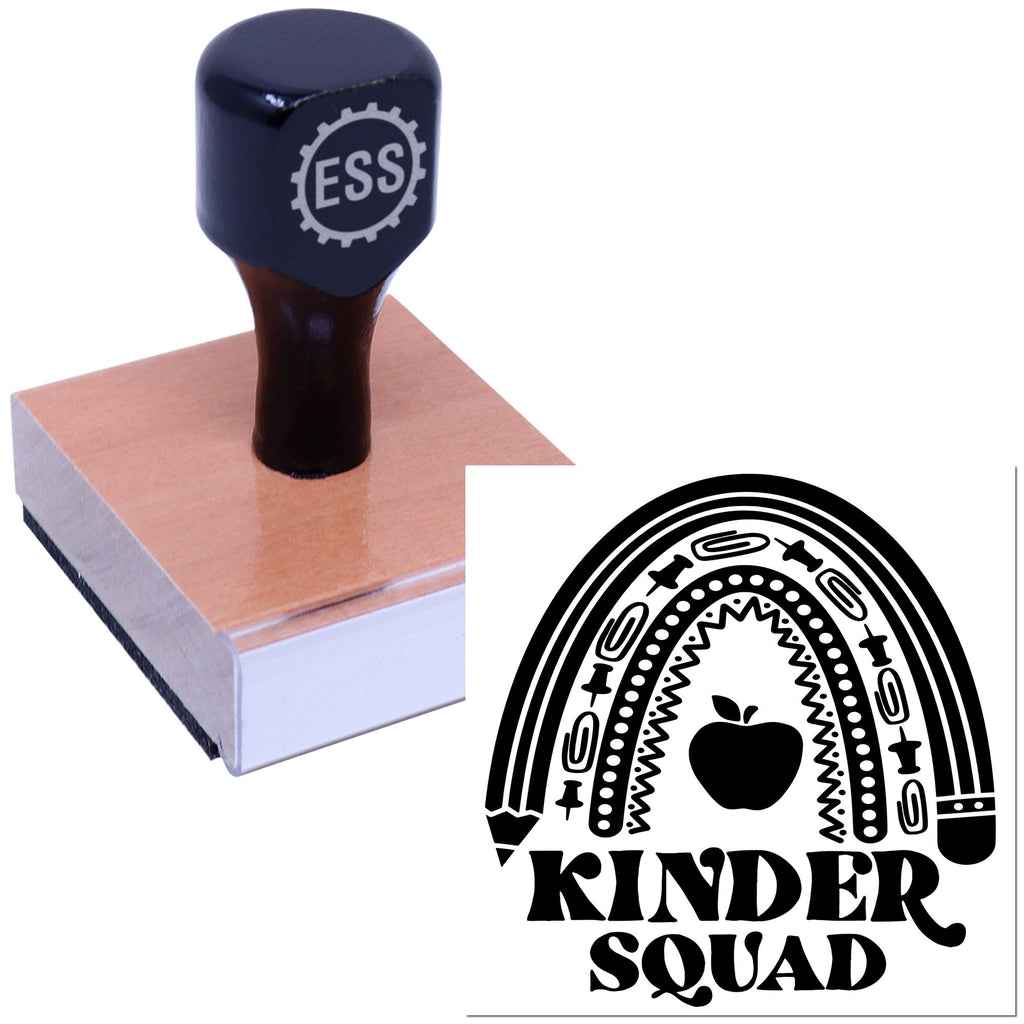- Motivation: Celebrate progress—playful rainbow made of pencils and school icons alongside the bold apple and “KINDER SQUAD” text creates memorable reward stamps that encourage continued effort.