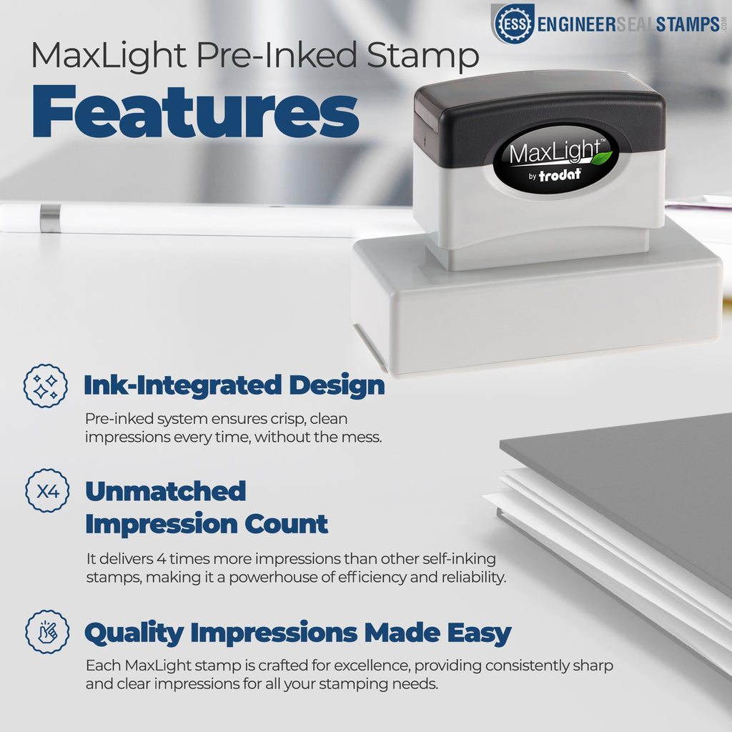 - LONG-LASTING PERFORMANCE: Premium MaxLight pre-inked stamp delivers thousands of crystal-clear impressions before needing a refill. Durable metal seal embosser ensures consistent, professional results.