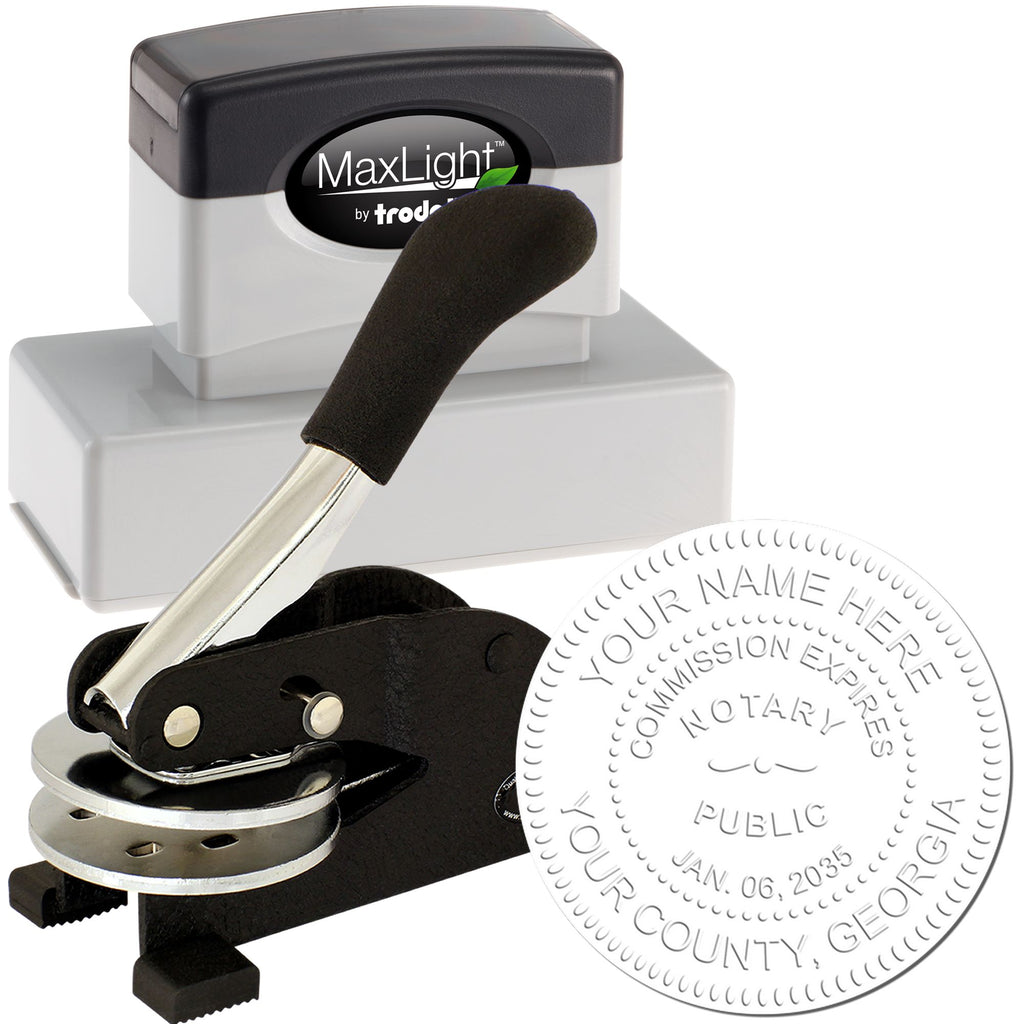 - PROFESSIONAL QUALITY: Georgia-compliant notary kit includes both MaxLight pre-inked stamp (7/8" x 2-1/4") and embossing seal (1-5/8" diameter) for clear, crisp impressions that meet all state requirements.