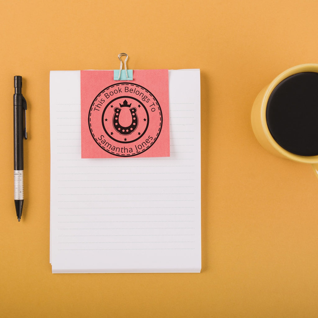 - PERSONALIZED EQUESTRIAN ELEGANCE: Transform your book collection with our pre-inked horseshoe crown design stamp, perfect for horse lovers and book enthusiasts. Makes up to 15,000 crystal-clear impressions without re-inking.