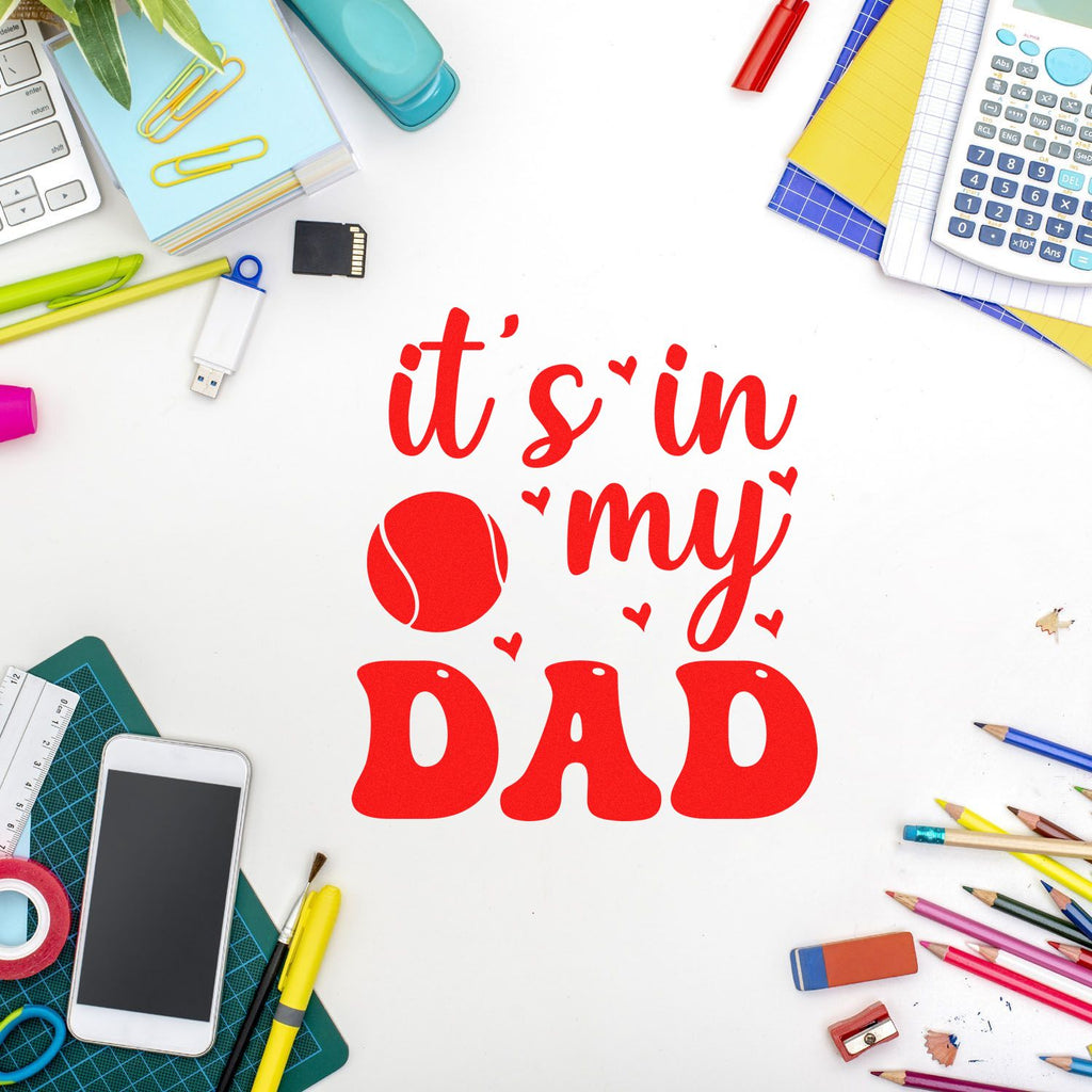 - Sentimental design: The striking black-and-white motif reads “it’s in my dad” with a playful baseball icon and tiny heart accents, combining warmth and pride in a compact, eye-catching layout.