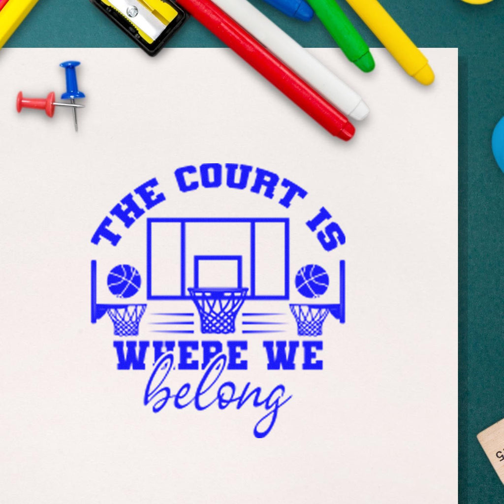 - Clarity: Achieve sharp, legible 1-5/8" square imprints with precision laser engraving that preserves ultra-fine detail from the stylized backboard to the bold “The Court Is Where We Belong” slogan.