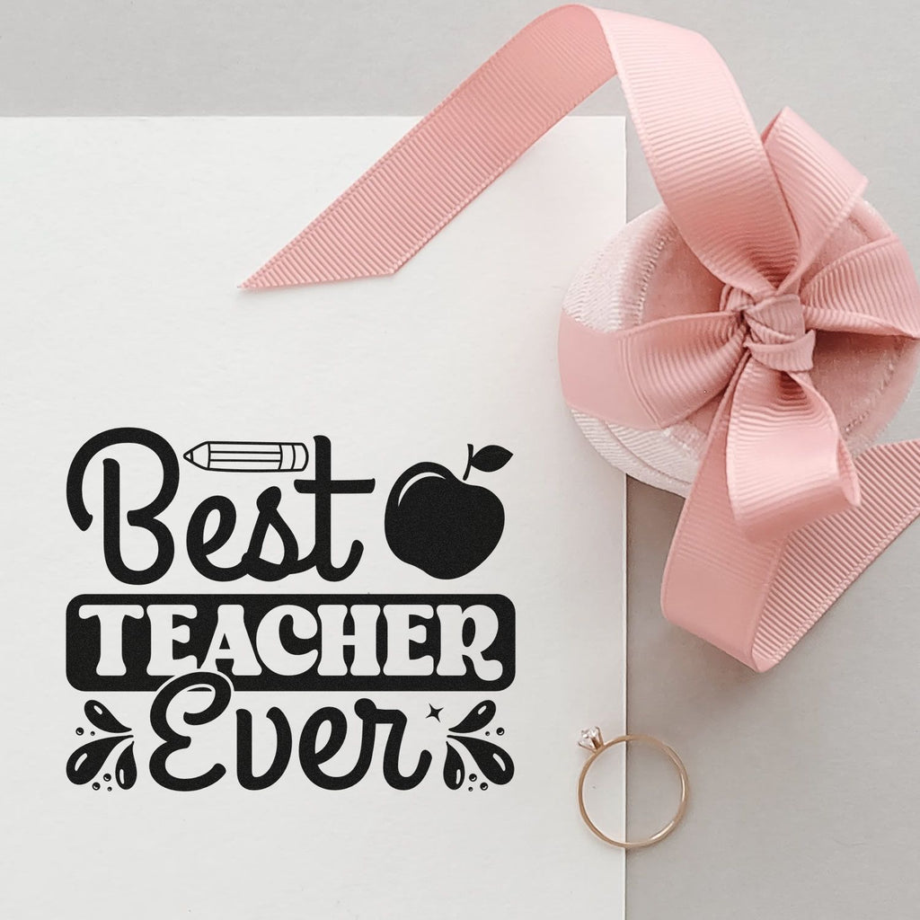 Nurture every note with our Self-Inking “Best Teacher Ever” Card Stamp, a 1-5/8" square of pure classroom joy that turns quick messages into moments that sparkle. Bold black lettering dances in a lively mix of fonts, a crisp pencil crowns the design, an apple rests nearby, and tiny stars and droplets frame the scene—polished, gift-ready, and impossible to miss.