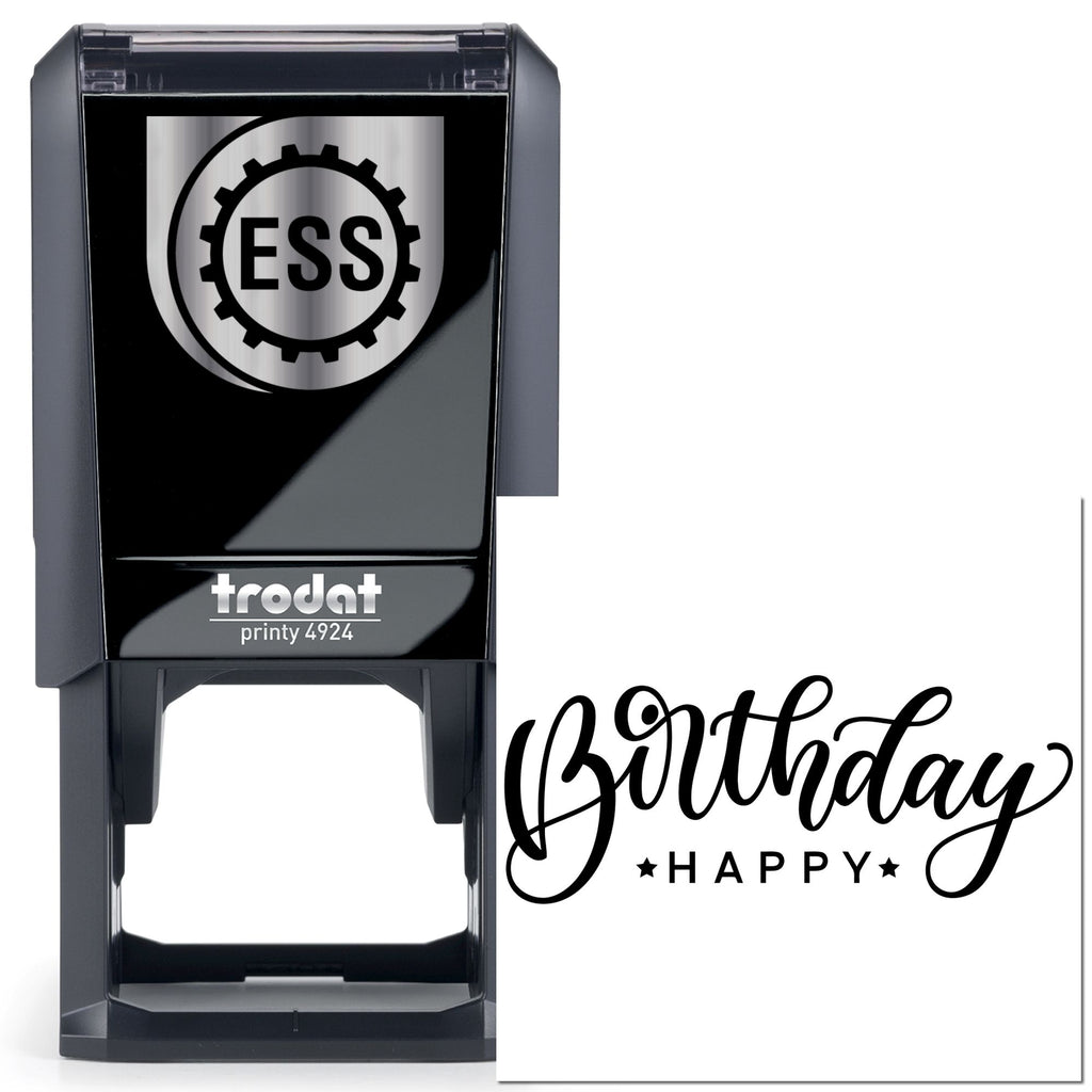 Glimmering ink, one smooth press—your celebration comes to life. Our 1-5/8" square self-inking celebration stamp features chic black calligraphy with “Birthday” sweeping across the top, “HAPPY” in bold caps, and tiny stars that sparkle on the page—perfect for invitations, place cards, thank-you notes, and gift tags that feel crafted by hand, finished like a pro.
