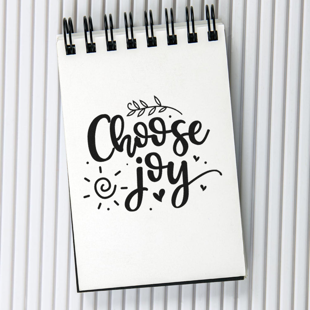 - Add personality: Bold black script reading “Choose joy” with a graceful leafy branch, tiny hearts, dots, and a swirling sun creates an instant focal point that lifts every handmade card or scrapbook page.