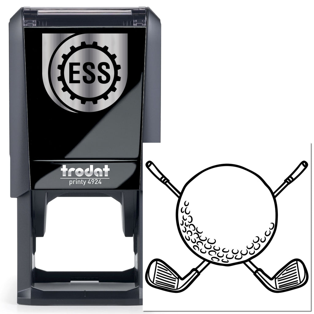 Born from our love of classic course heritage, this 1-5/8" square stamp showcases a bold centerpiece: a textured, dimpled sphere with two sleek clubs crossing in a dynamic X—high-contrast black linework that looks premium, iconic, and instantly brandable on tags, bags, boxes, and signage.