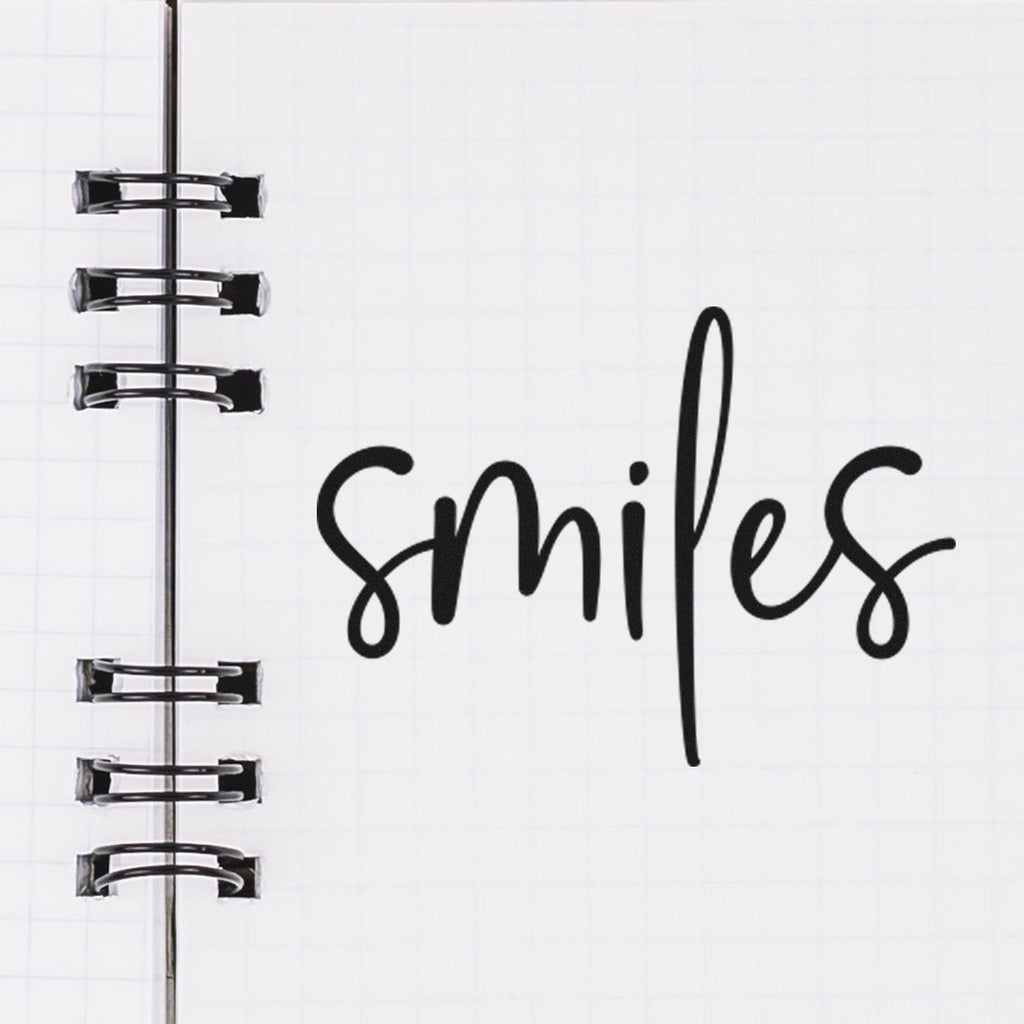 Hand-crafted curves, bold strokes, and a modern calligraphy feel give “smiles” a bright, upbeat vibe that lifts pages, cards, and packages at a glance. Think pristine black script or your favorite hue, popping like a fresh brushstroke on a clean white canvas.