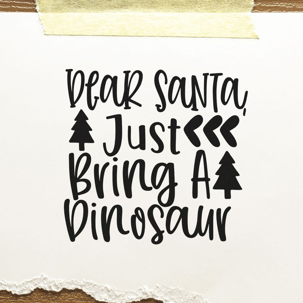 Dashing through December, your dino-loving kid taps one button and—thunk!—a crisp, high-contrast dinosaur Christmas imprint lands perfectly on the page, turning ordinary journaling into a festive little adventure of footprints, pine trees, and cheeky “I want a dinosaur” hand-lettering that makes everyone grin.