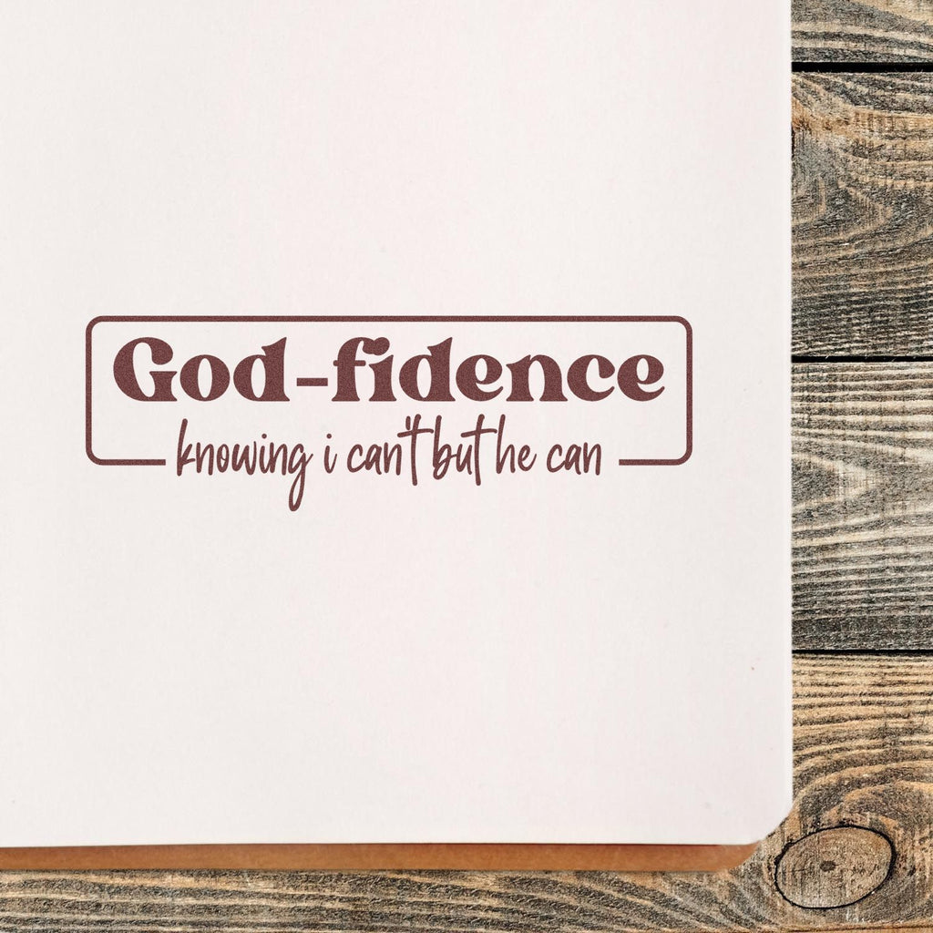 Discover the Self-Inking Divine Confidence Party Favor Stamp, where bold faith meets effortless convenience in one powerful press. Designed with a striking monochrome layout and clean rectangular border, this 1-5/8" square stamp showcases “God-fidence” in a strong, stylized serif, anchored by the heartfelt script “knowing i can’t but he can.” Every impression becomes a mini testimony—crisp, confident, and full of quiet humility that guests will remember long after the celebration ends.