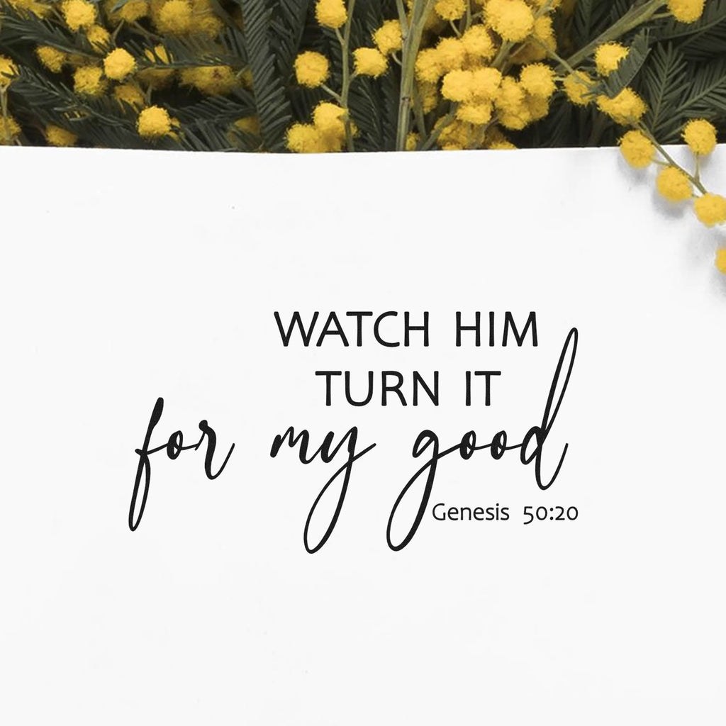 Each press delivers a crisp, professional impression of the phrase “WATCH HIM TURN IT / for my good / Genesis 50:20,” perfectly aligned and ready to anchor your layouts, devotional albums, prayer journals, greeting cards, and church event tags. Use it to title testimony pages, mark turning-point moments in your story, highlight answered prayers, or add a confident, faith-forward focal point to encouragement cards and Bible study gifts. The contemporary design meets timeless promise, making your projects look curated, cohesive, and deeply meaningful.