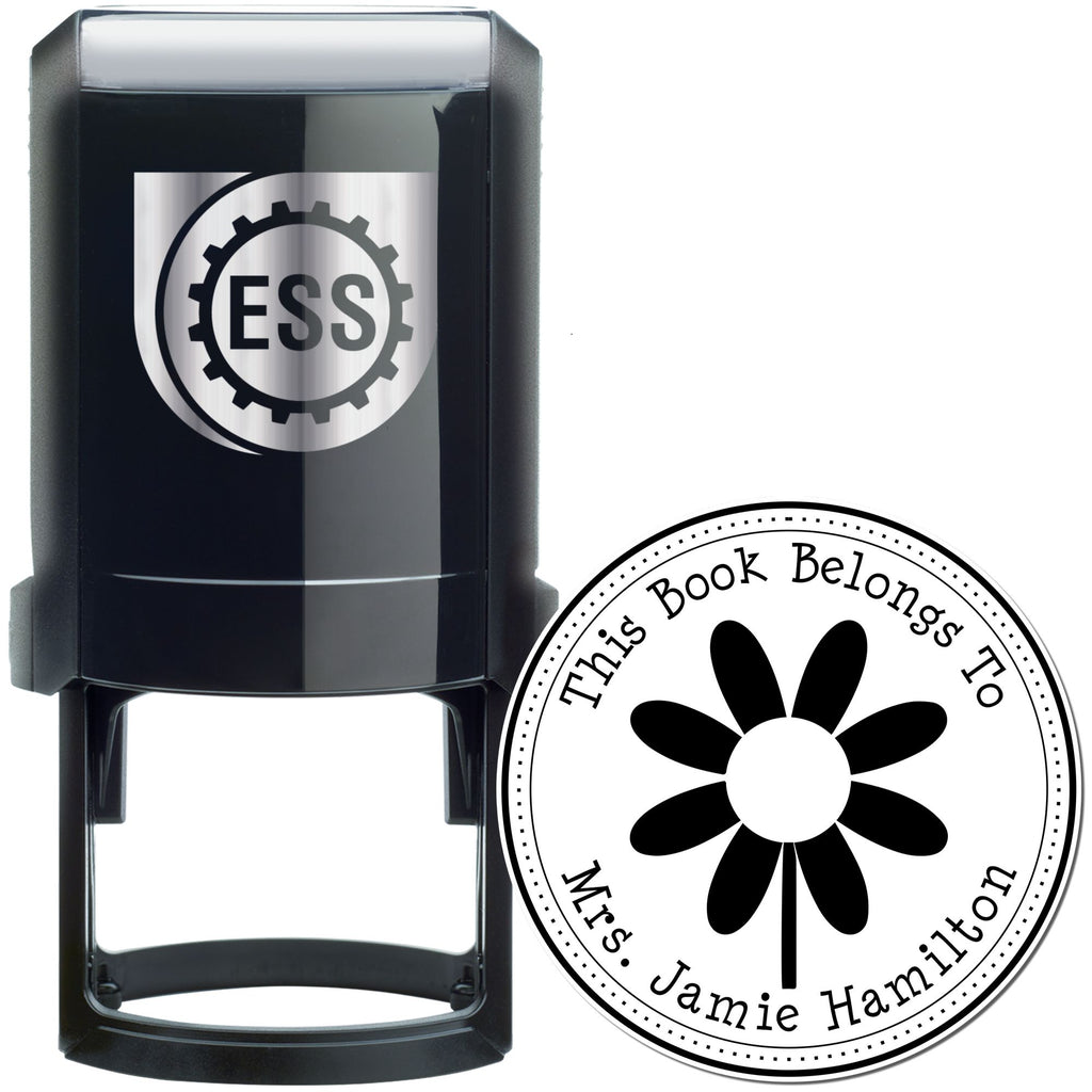 - PERSONALIZED LIBRARY ESSENTIAL: Create a lasting impression with our 1-5/8" diameter daisy-themed stamper, featuring customizable text and elegant triple-border design. Perfect for marking your cherished book collection with style and sophistication.