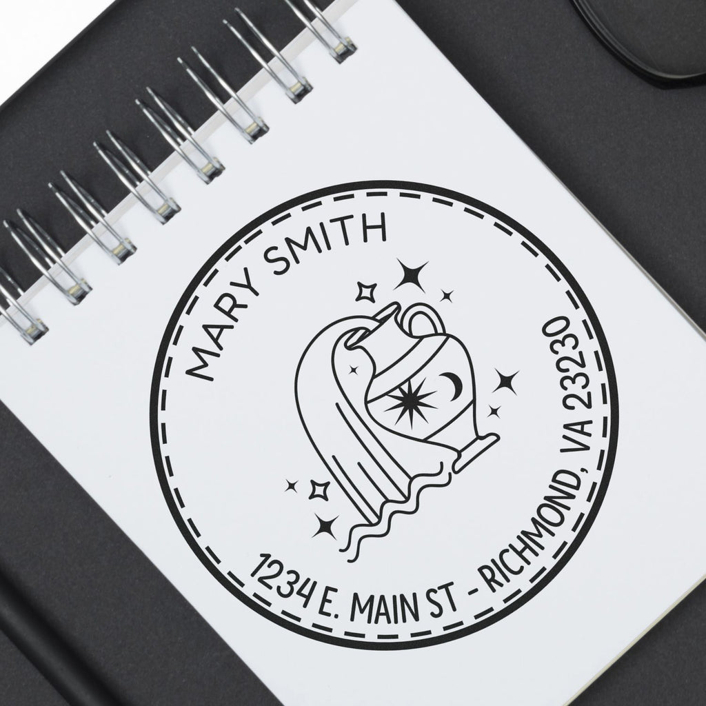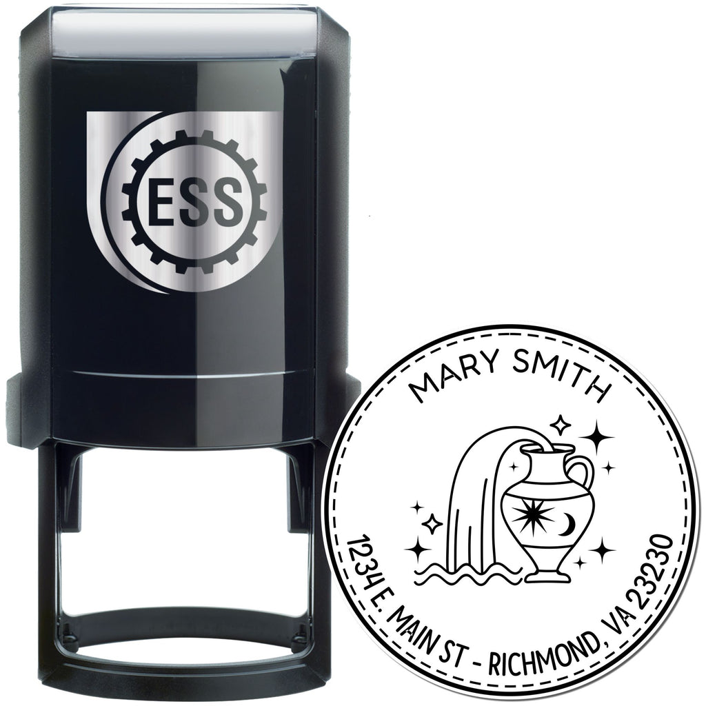 - CUSTOMIZABLE DESIGN: Personalize your stamp with your name and address in a stylish Aquarius-themed design! The 1-5/8" diameter impression features a unique zodiac motif that adds a personal touch to your home decor. Make your mark with a stamp that’s uniquely yours!