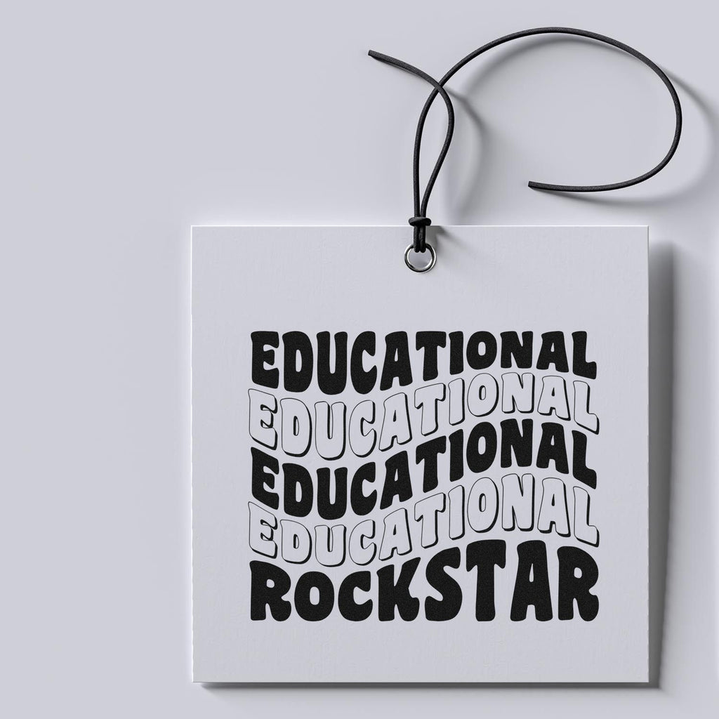 Four stacked iterations of “EDUCATIONAL” ripple with energy while a bold “ROCKSTAR” grounds the message—high-contrast, playful typography that grabs attention and gives students that “I did it!” moment. perfect for course launches, craft projects, classroom displays, and portfolios that pop.