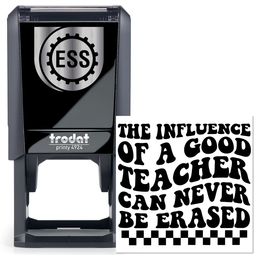 Let your gratitude leave a lasting mark with the Self-Inking Enduring Influence Paper Craft Stamp, a 1-5/8" square that boldly proclaims “The influence of a good teacher can never be erased” in wavy, chunky lettering anchored by a crisp checkerboard edge—graphic, modern, and impossible to ignore.