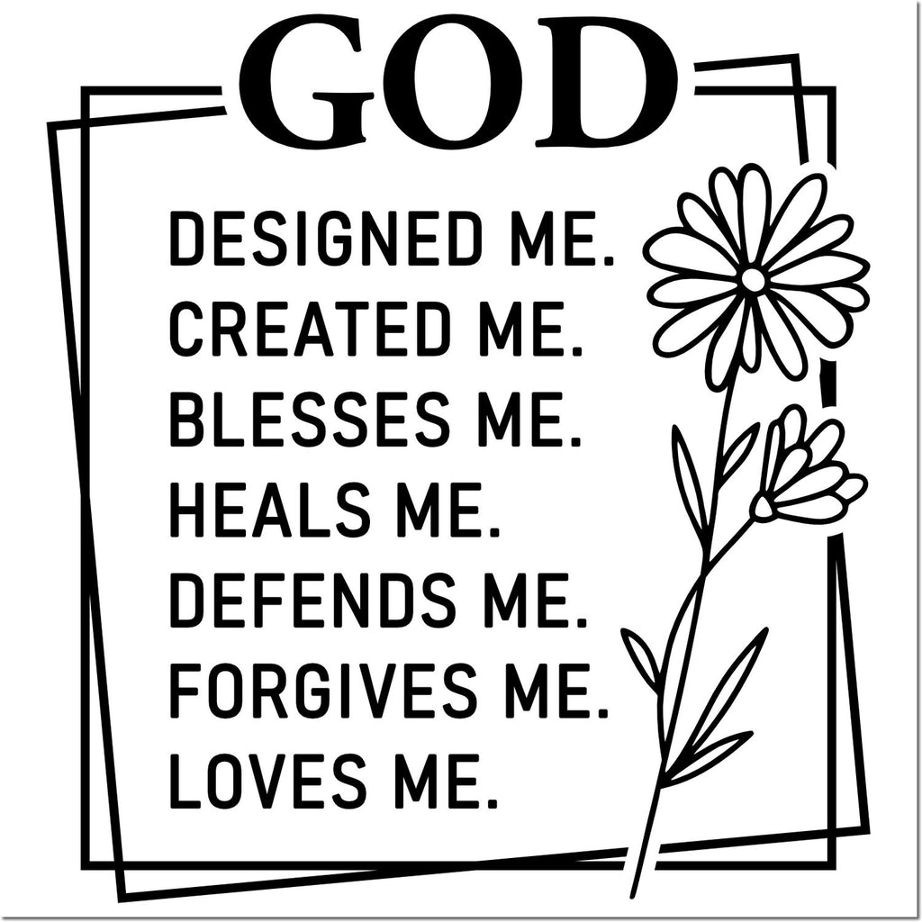 A sleek, monochrome layout keeps “GOD” front and center, while a graceful single-stem floral sketch leans gently against layered rectangles, giving each stamp a modern, artful feel. The generous 1-5/8" square print area is perfectly sized for mini cards, poster corners, borders, and craft stamp cards—bold enough to stand out, refined enough to complement any design. Whether you’re decorating Sunday school craft stamp cards or creating take-home encouragements, your materials will look cohesive, intentional, and beautifully on theme.