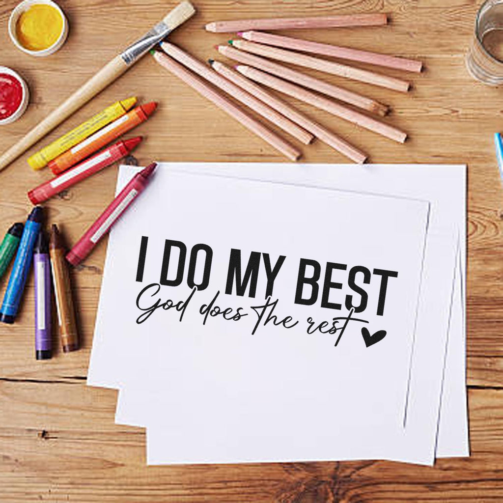 - Create meaningful keepsakes: Bold block capitals “I DO MY BEST” paired with flowing script “God does the rest” and a tiny heart produce a beautiful, faith-forward tag perfect for programs, gift tags, and memory books.