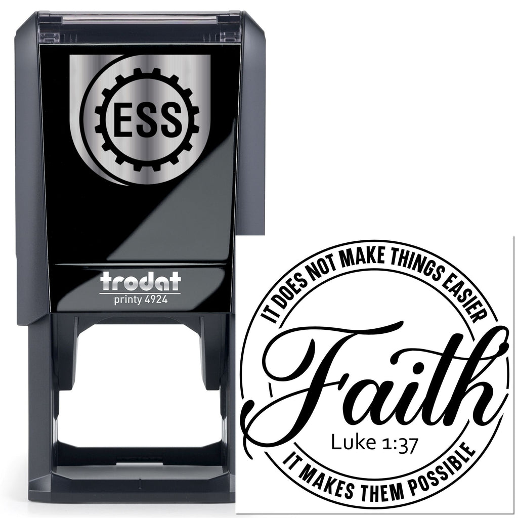 Transform every sticker, scrapbook page, and Sunday school activity into a moment of encouragement with our Self-Inking Faith Sticker Crafting Stamp. This compact 1-5/8" square stamp holds a beautifully designed circular emblem featuring the word “Faith” in flowing script, framed by the powerful reminder: “It won’t erase the struggle—it turns the impossible into possibility,” along with Luke 1:37 in clean, modern type. One smooth press delivers a crisp, inspiring impression that instantly ties your project back to God’s promises.