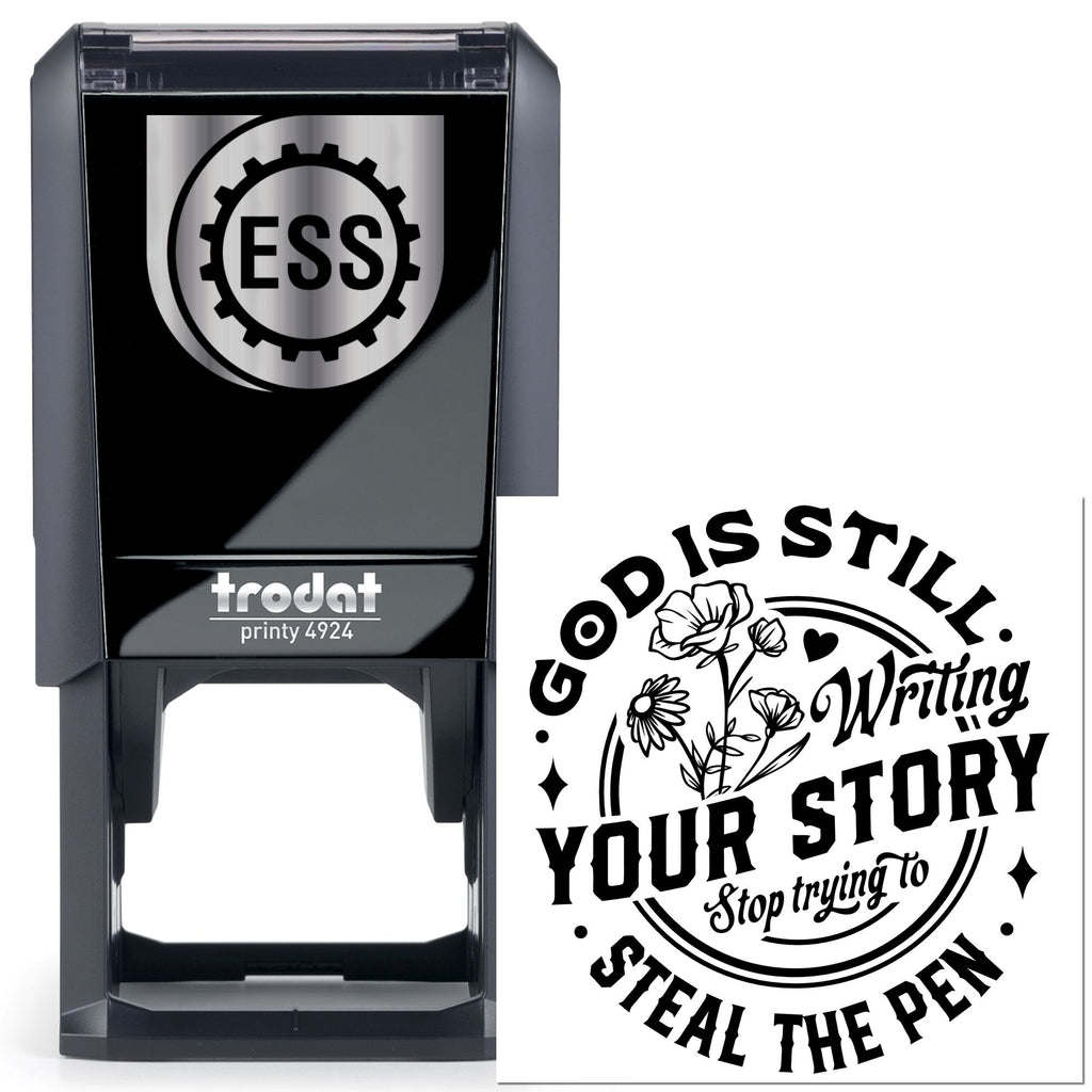Tucked inside every scrapbook, journal, and handmade card is a story waiting to be told—and our Self-Inking Floral Typography Paper Craft Stamp is designed to help you tell it beautifully. Centered with the inspiring message “God is still writing your story,” in an artful mix of serif and script, this 1-5/8" square stamp layers delicate wildflowers, a tiny heart, and the gentle reminder “Stop trying to steal the pen” into one powerful, faith-filled focal point for your pages and projects.