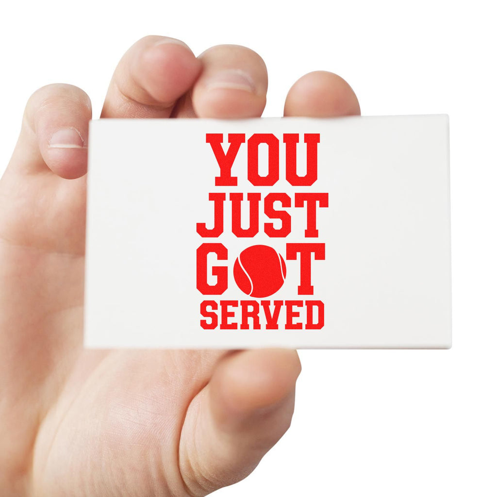 - Create consistency: Produce razor‑sharp, laser‑engraved “Got Served” impressions every time; uniform black headlines on white cards give your event a polished, cohesive look.