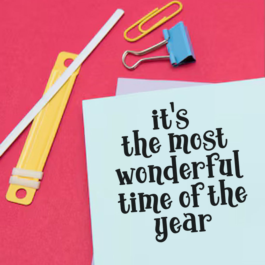 Born from late-night card-making sessions in our tiny workshop, this Self-Inking Holiday Cheer Mini Card Stamp turns simple paper into a burst of joy—one smooth press, one perfect impression, every time. The lively black script flows like fresh ink on snow, stacking in a playful pyramid that feels hand-lettered and heartfelt, sized at a tidy 1-5/8" square to nestle onto tags, envelopes, and mini notes without crowding your layout.