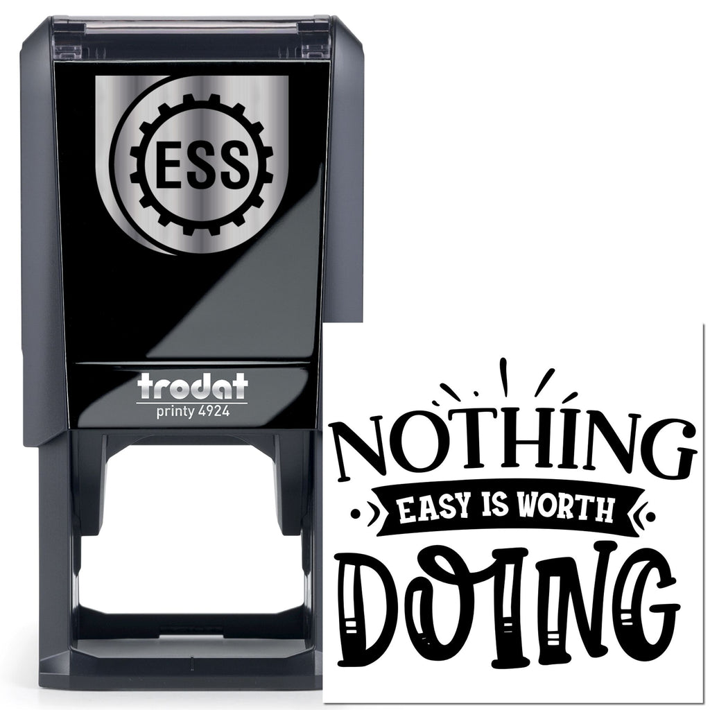 Fired by grit and crafted for momentum, this 1-5/8" square Self-Inking Inspirational Quote Craft Stamp delivers your daily rallying cry: “Nothing truly worthwhile comes easy.” Bold black-and-white artwork pairs strong serif type with lively hand-lettered scripts, flourished accents, and kinetic lines—an artisanal composition that lands with energy in journals, scrapbooks, and classroom displays.