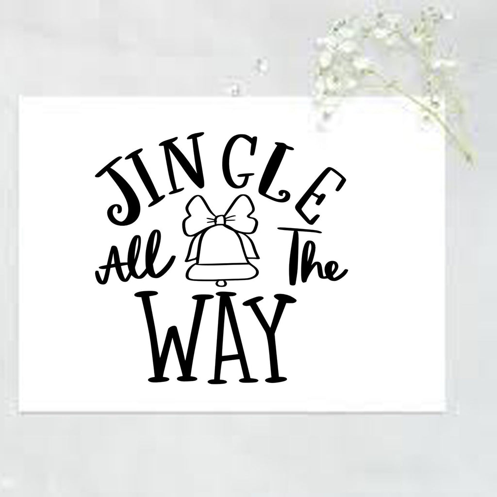Bright, bold text declares “Jingle All The Way” while a minimalist bell tied with a graceful ribbon adds an elegant focal point. The modern black-and-white design pairs effortlessly with any palette, or switch it up with color to match your holiday story.