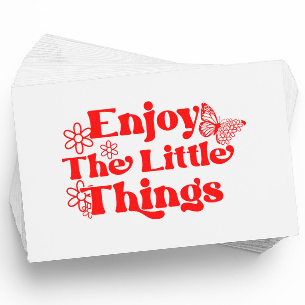 Tuck joy into every day with the Self-Inking Little Joys Note Card Stamp—our charming 1-5/8" square design that whispers “Relish the Little Moments” in lively, whimsical type. Delicate florals embrace the message while a graceful butterfly lands on the final flourish, turning quick notes into keepsakes and thank-yous into tiny celebrations.